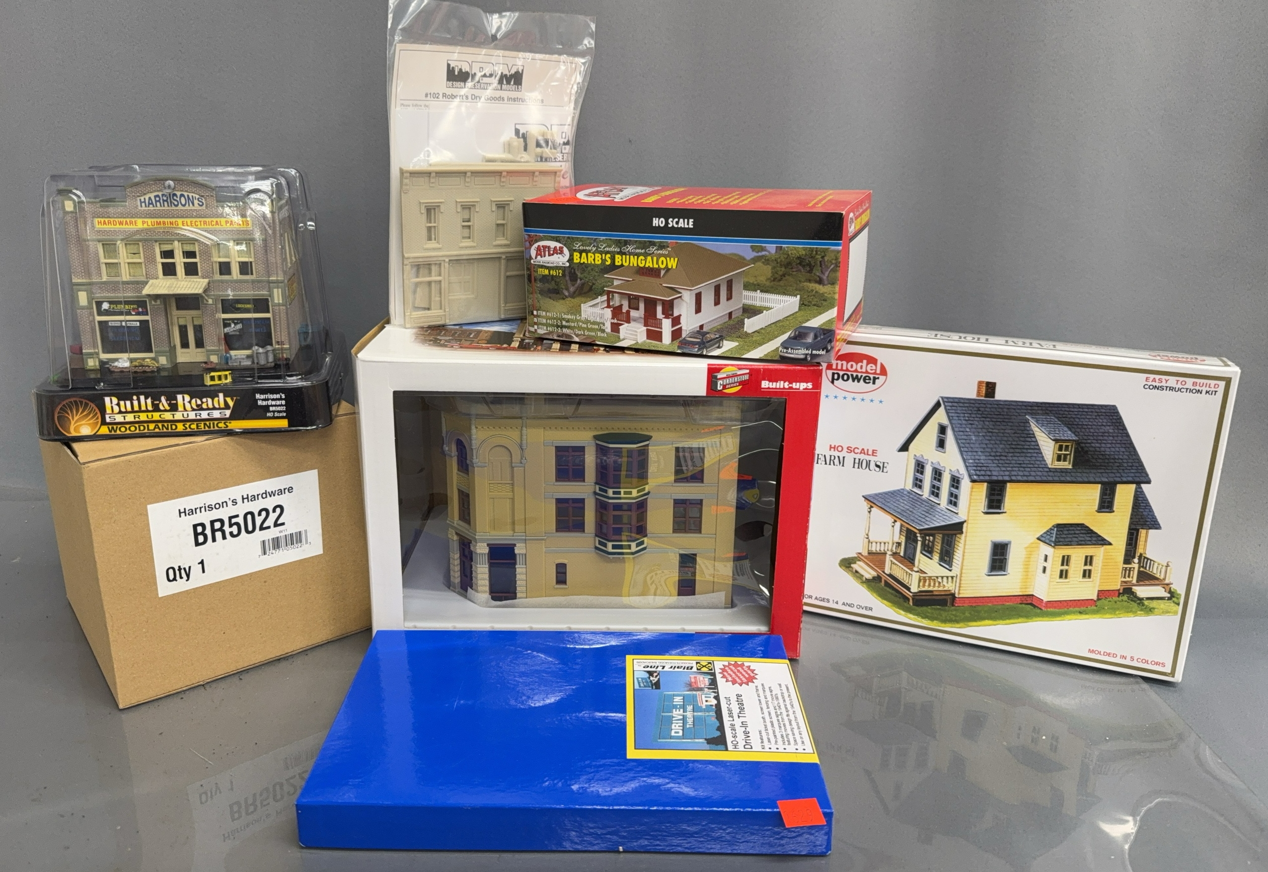 Train Scene Diorama Model Houses, Drive In Sign, Store Buildings - 5" x 7" approx of largest