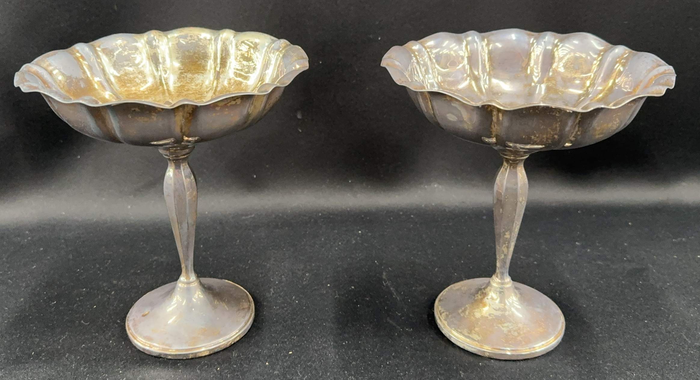 Pair Sterling Silver Weighted Compotes - 6" x 6.5" of each