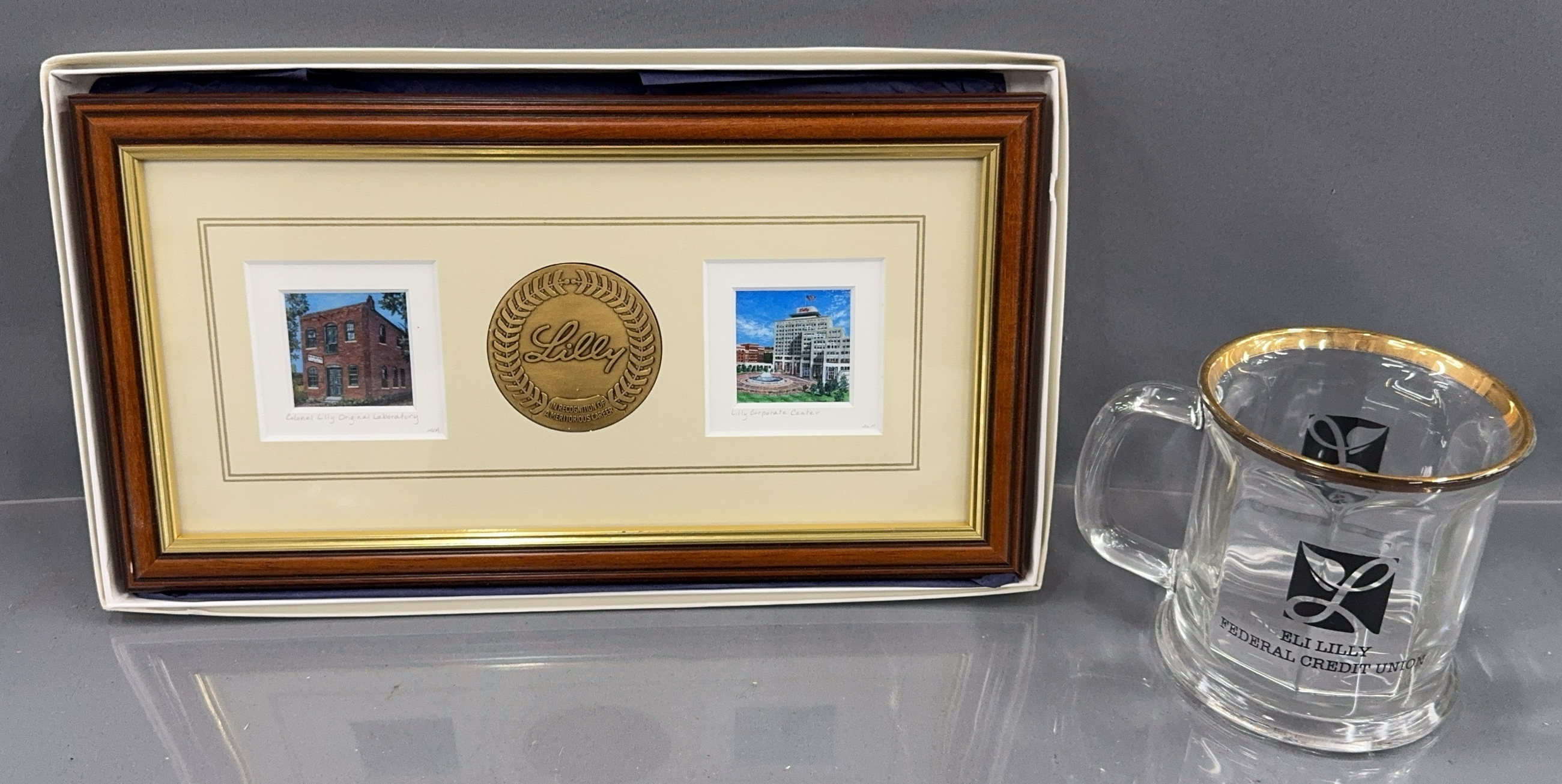 Eli Lilly Framed Commemorative Print and Glass Mug - 12" x 6.5" of frame