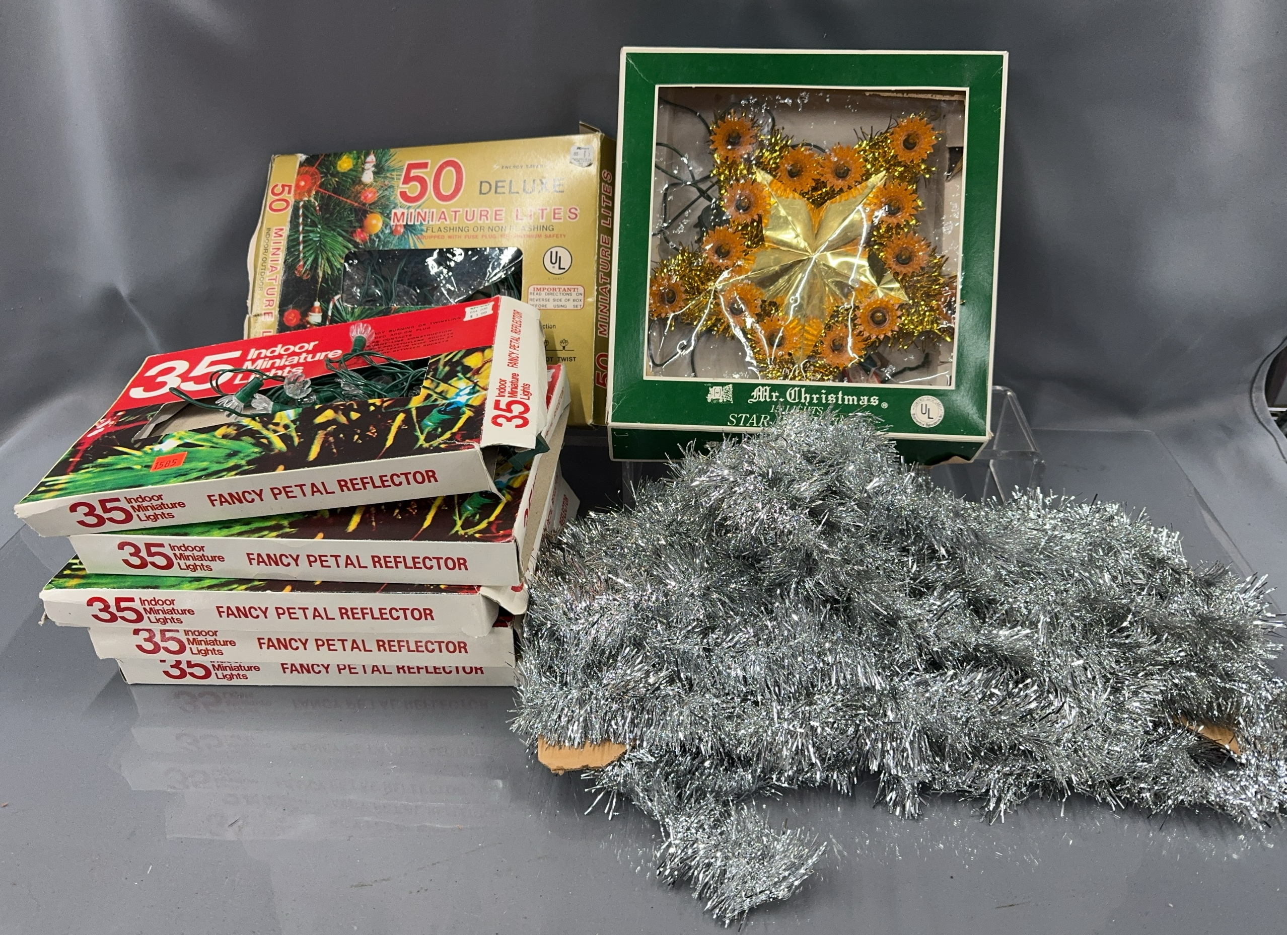 Vintage Christmas Lighted Star Tree Topper, Lights, Tinsel - 9" of tree topper