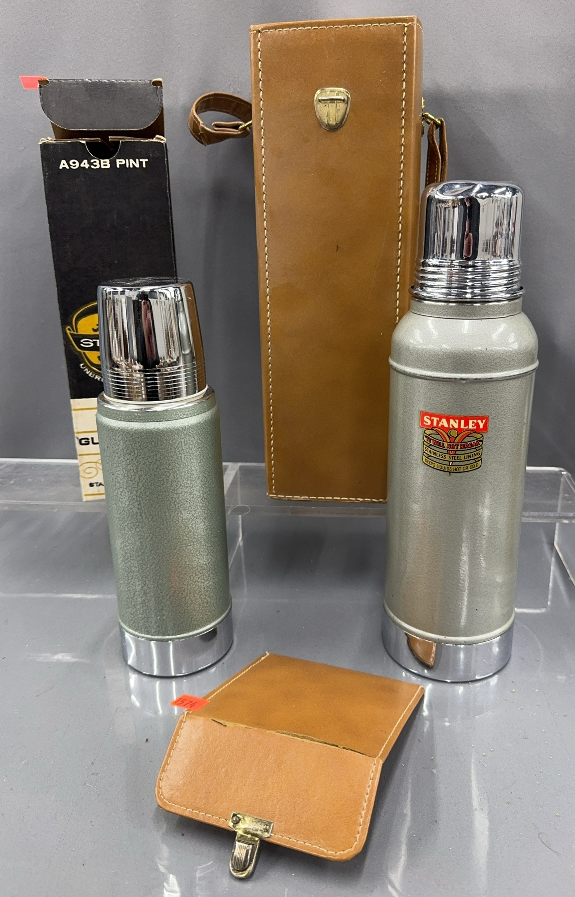 2 Vintage Stanley Thermos w/ Carrier - Both appear unused - 13" approx of tallest