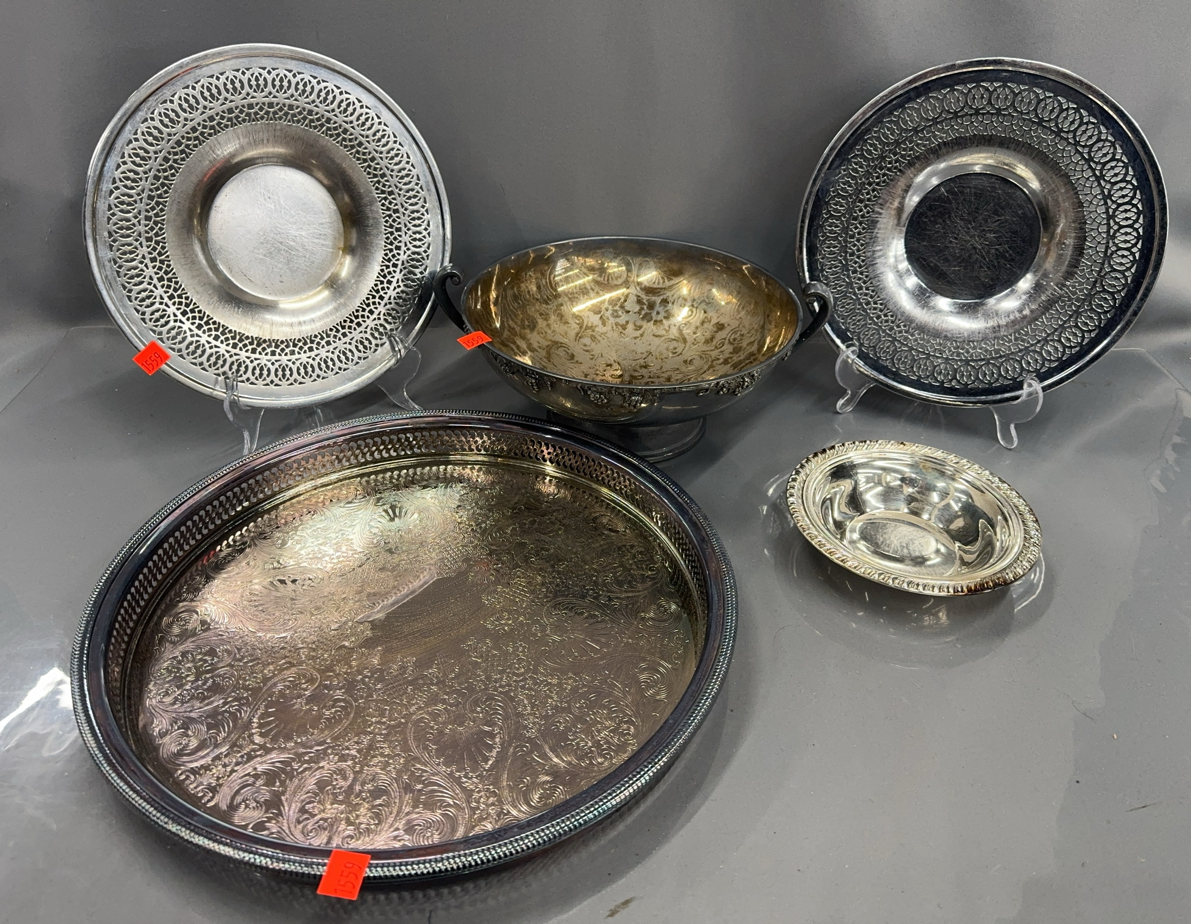 Silverplate Trays, Centerpiece Bowl, Wine Coaster - 15" D of largest