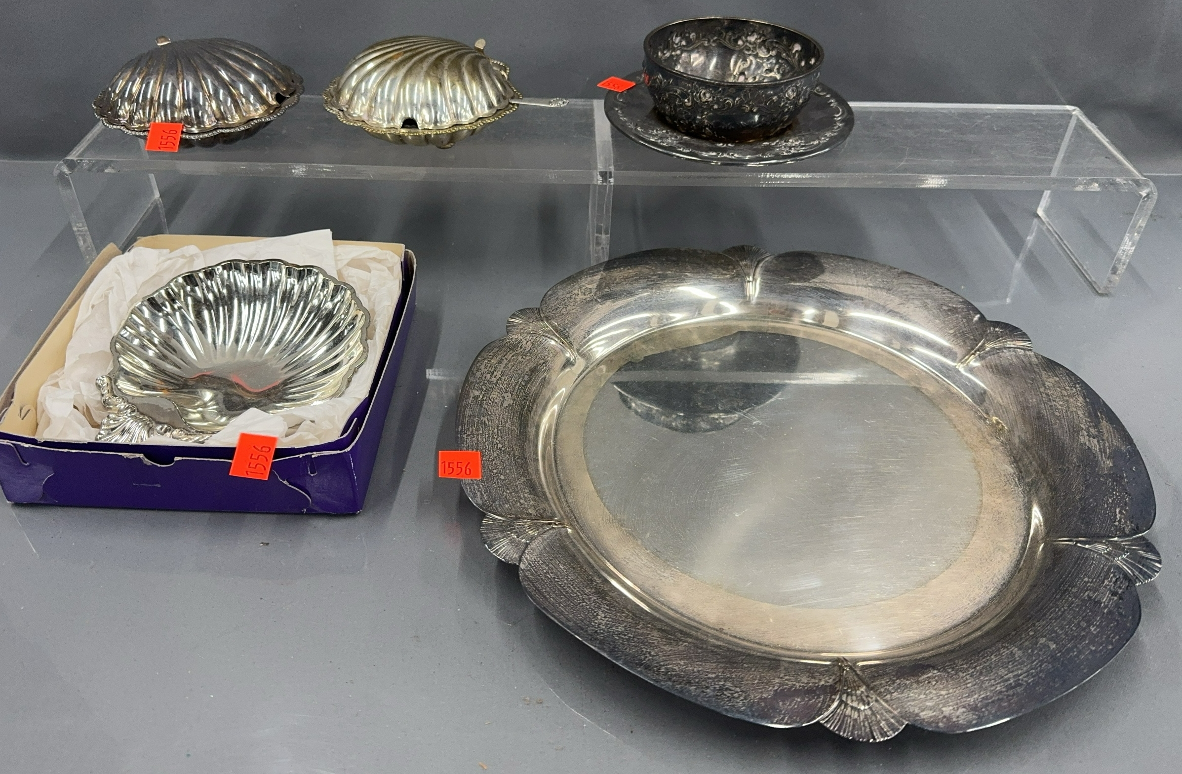 Silverplate Tray, Shell Motif Condiment, Small Bowl & Saucer, - 5pcs - 13" of largest