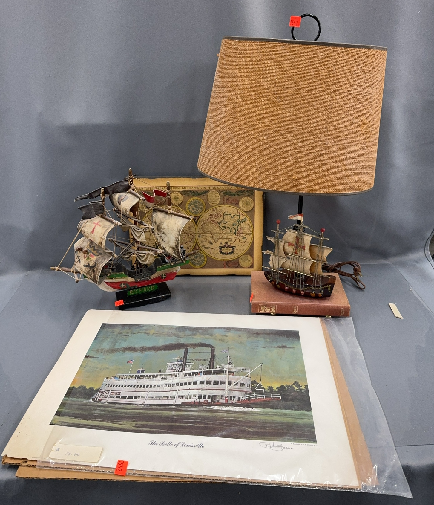 Belle of Louisville Print, Map Print Decorative Print on Board, Ship Table Lamp and Decor - 24" of table lamp