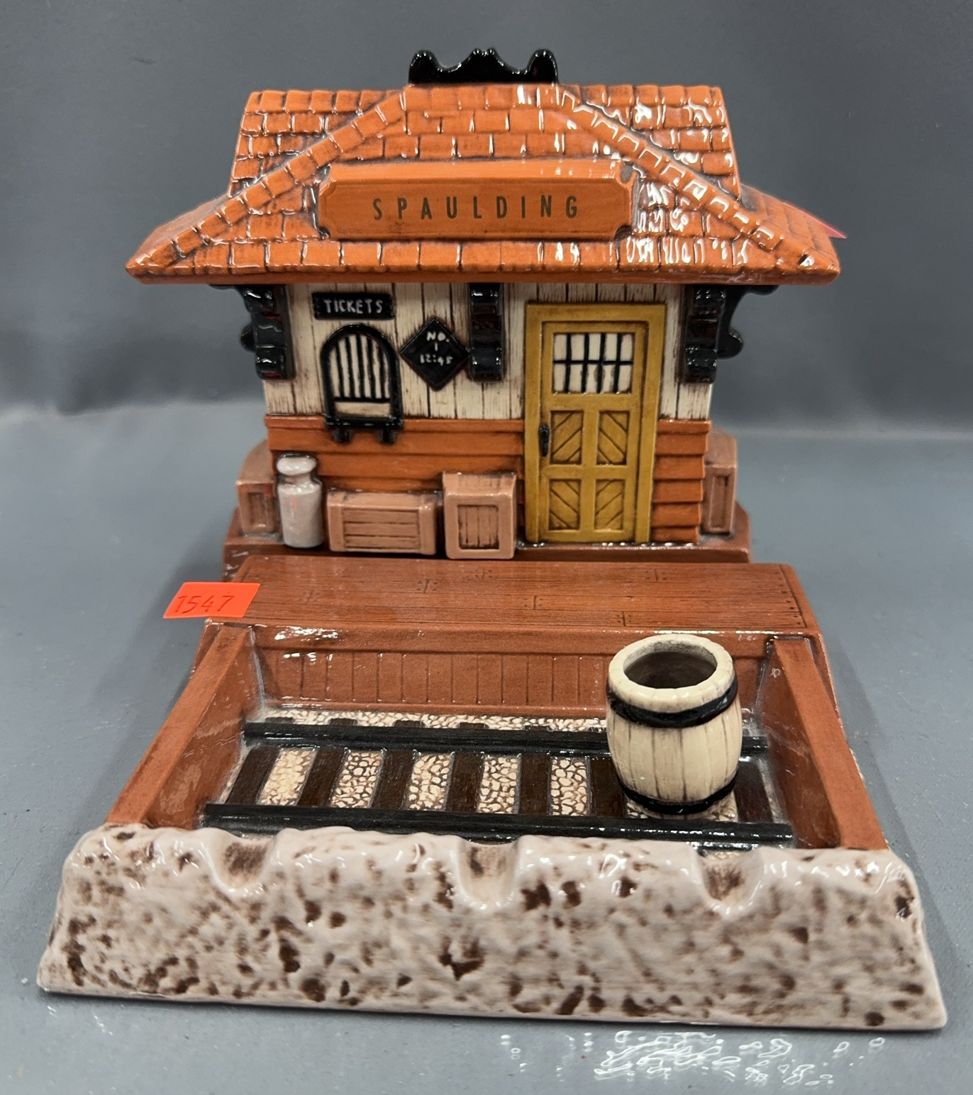 Spaulding Train Station Ceramic Tobacco Jar/Ashtray - 7" x 7" x 6"