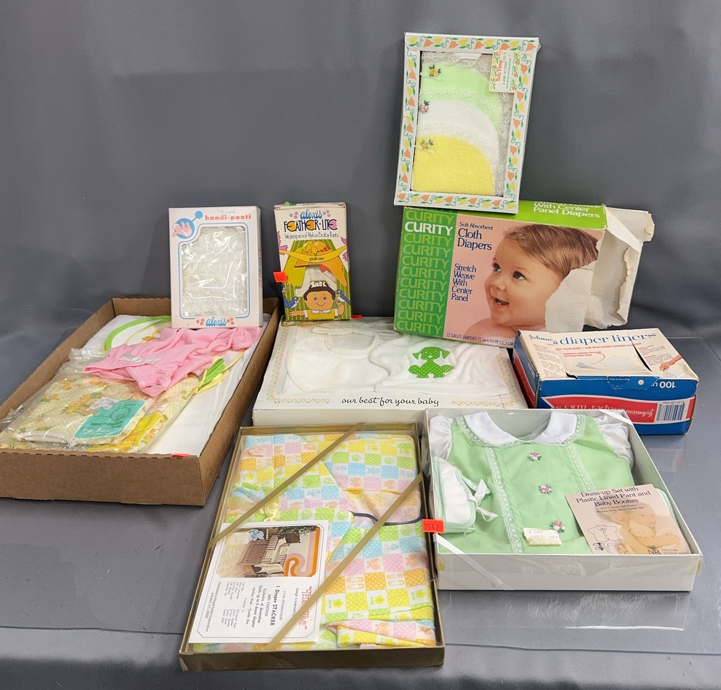 Assorted Vintage Baby Clothing Gift Sets, Cloth Diapers, Misc