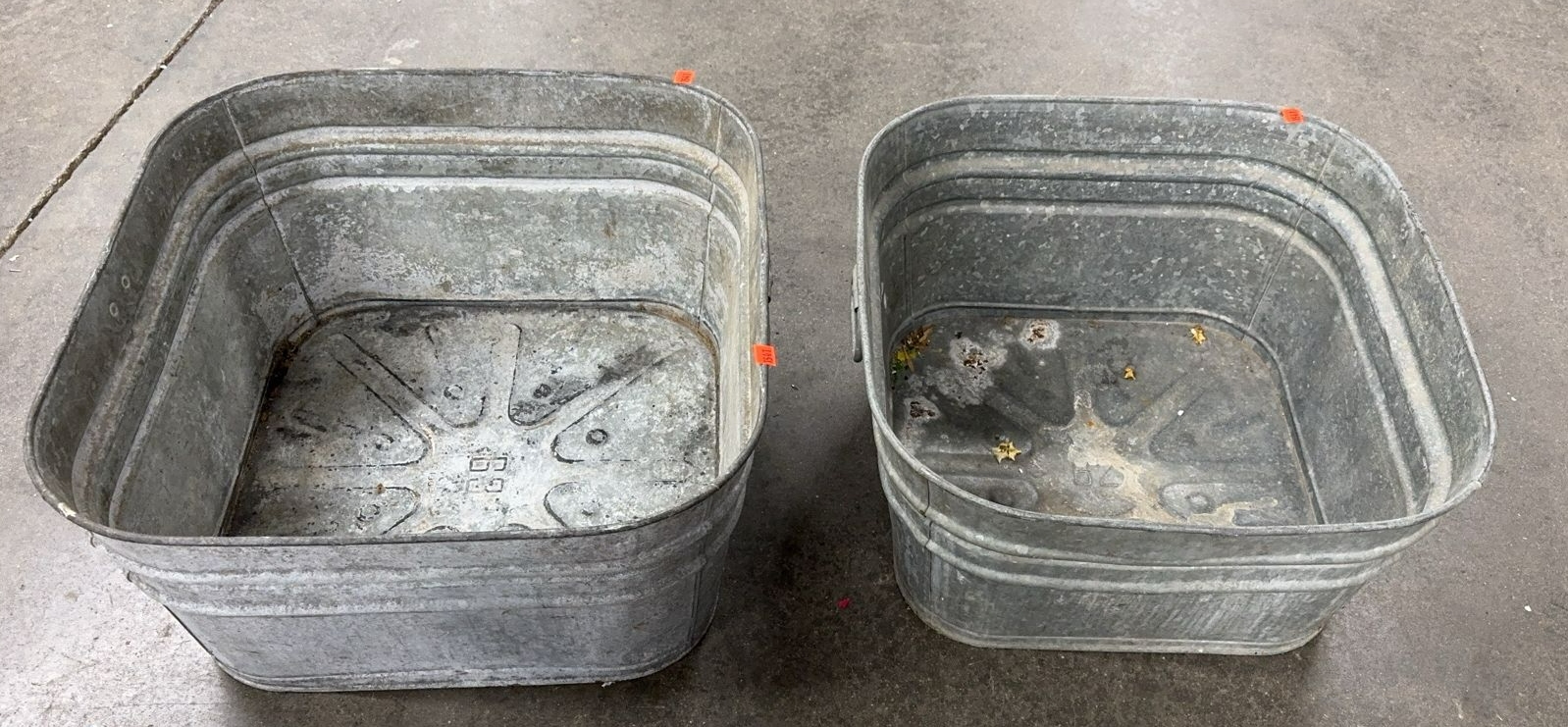 2 Square Galvanized Metal Tubs - 23" x 22" x 12" of largest