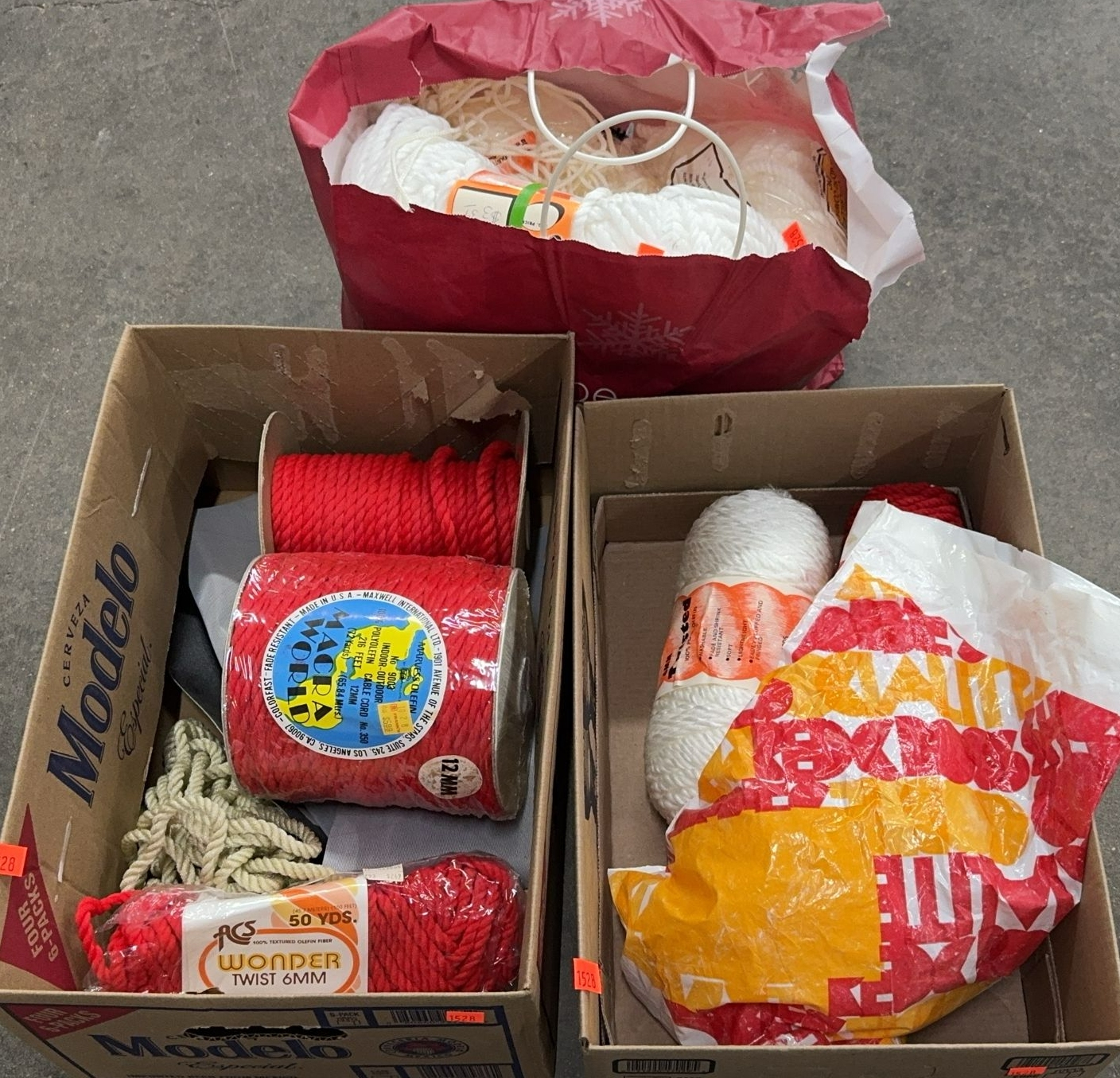 Various Macrame Rope Spools, Beads, Cord - 12MM largest size - 216FT longest