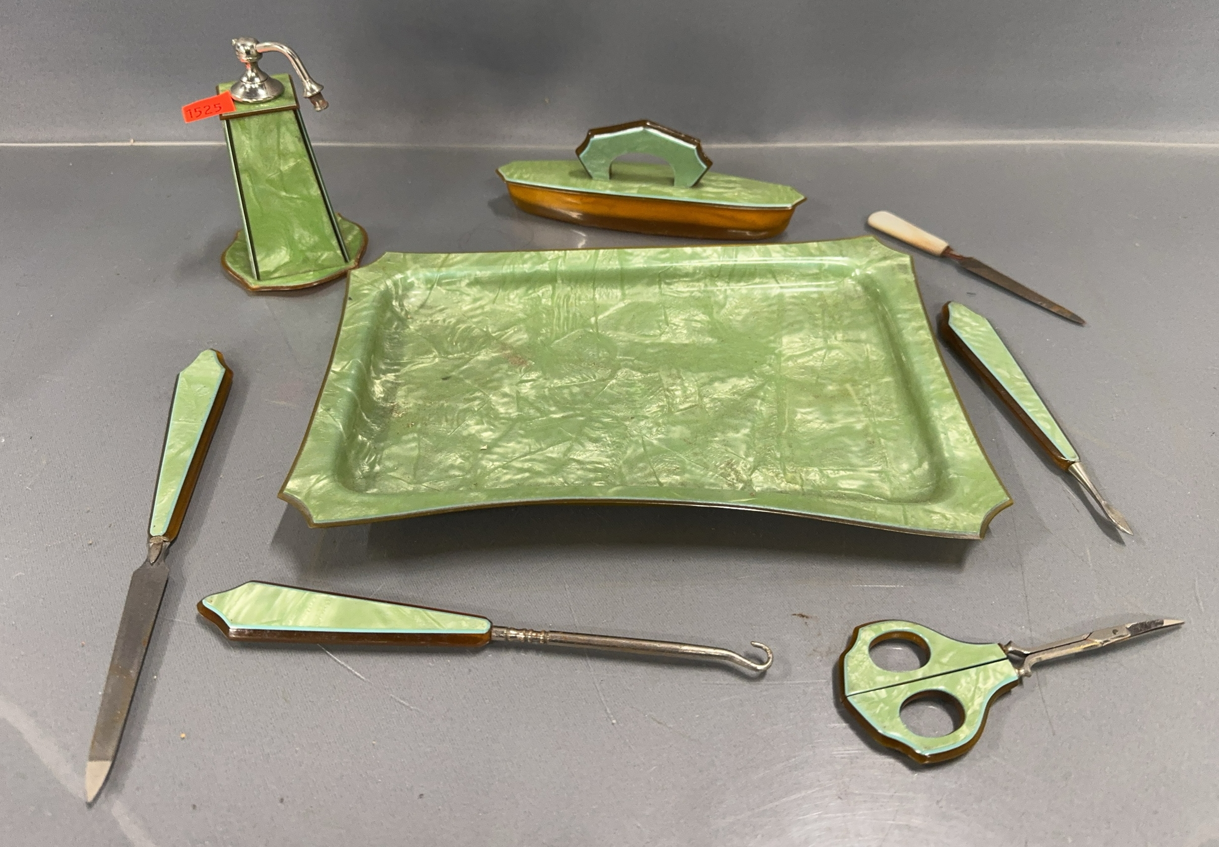 7pcs Celluloid Art Deco Vanity Set - 10" of tray