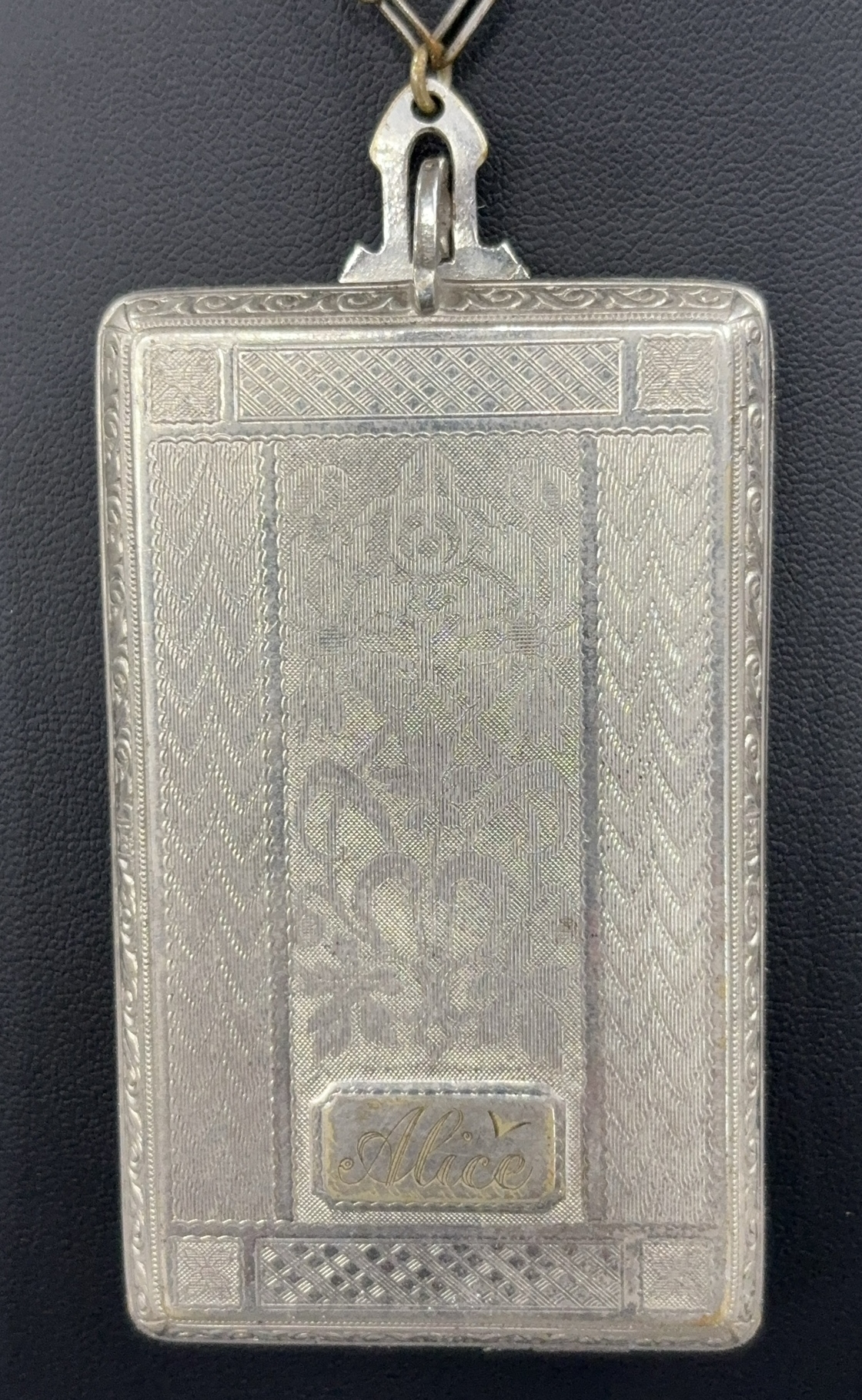 Deco Etched Silverplate Ladies Makeup/Card Case - 3" x 2" of case