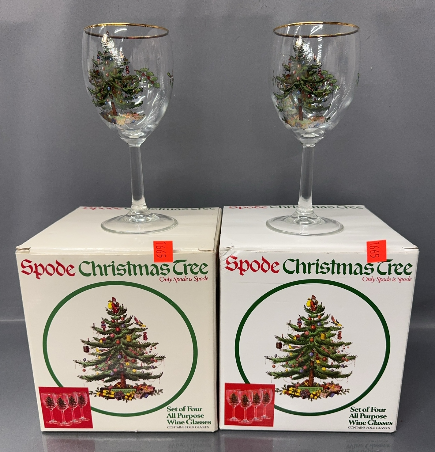 8 Spode Christmas Tree Glass Wine Stems - 7" of each