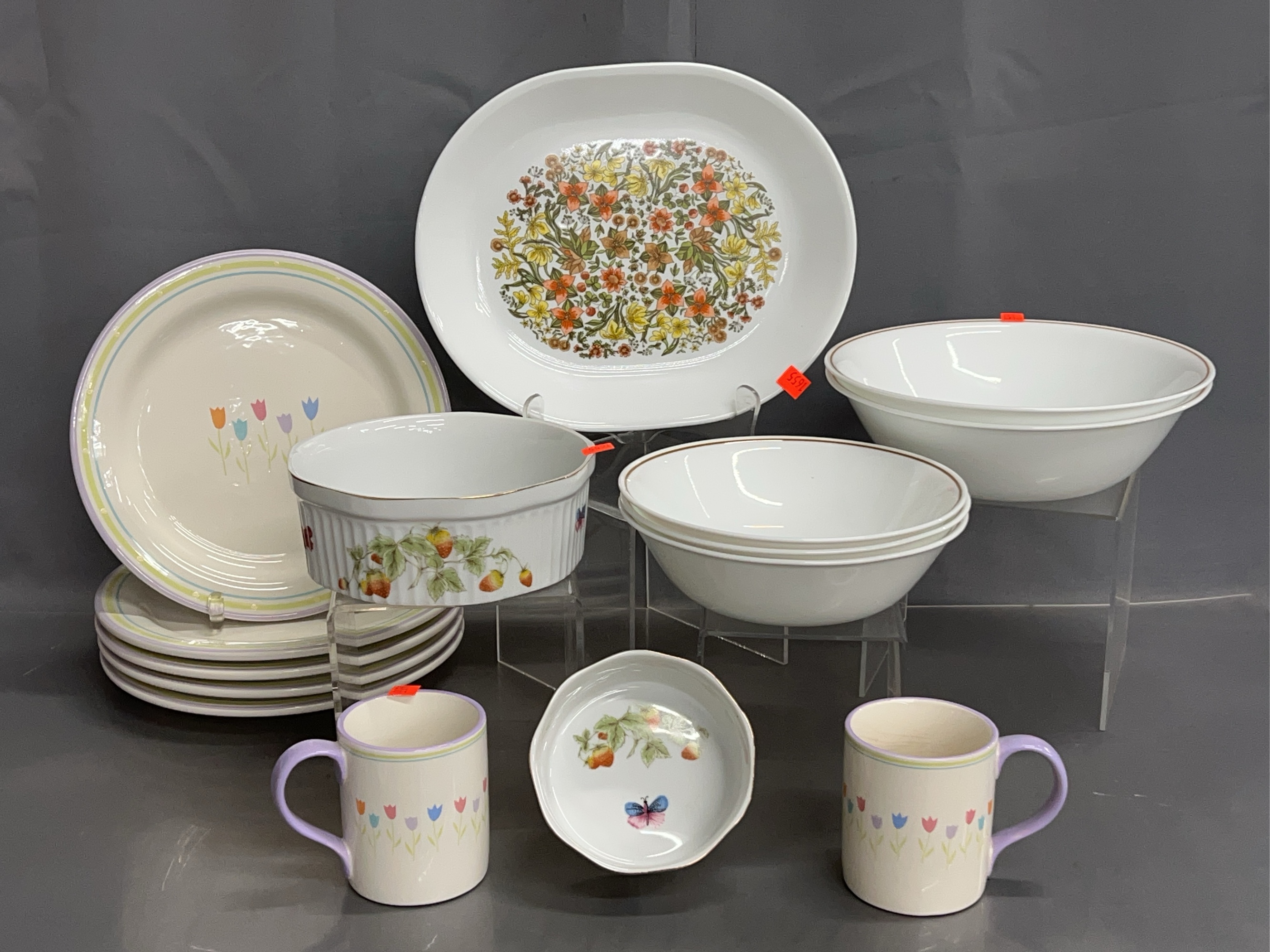 Corelle, Blossoms & Blossoms, Oven to Table Assorted Dishes - 12" of largest piece