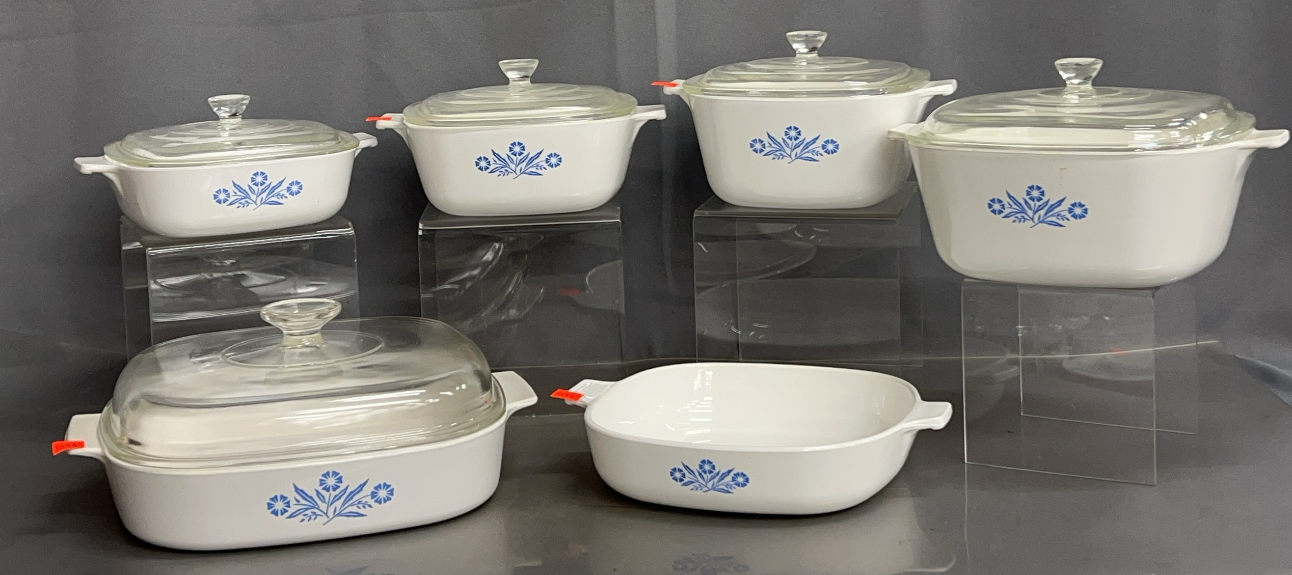 6 Corning Ware Baking Dishes w/ 5 Lids - 10" of largest