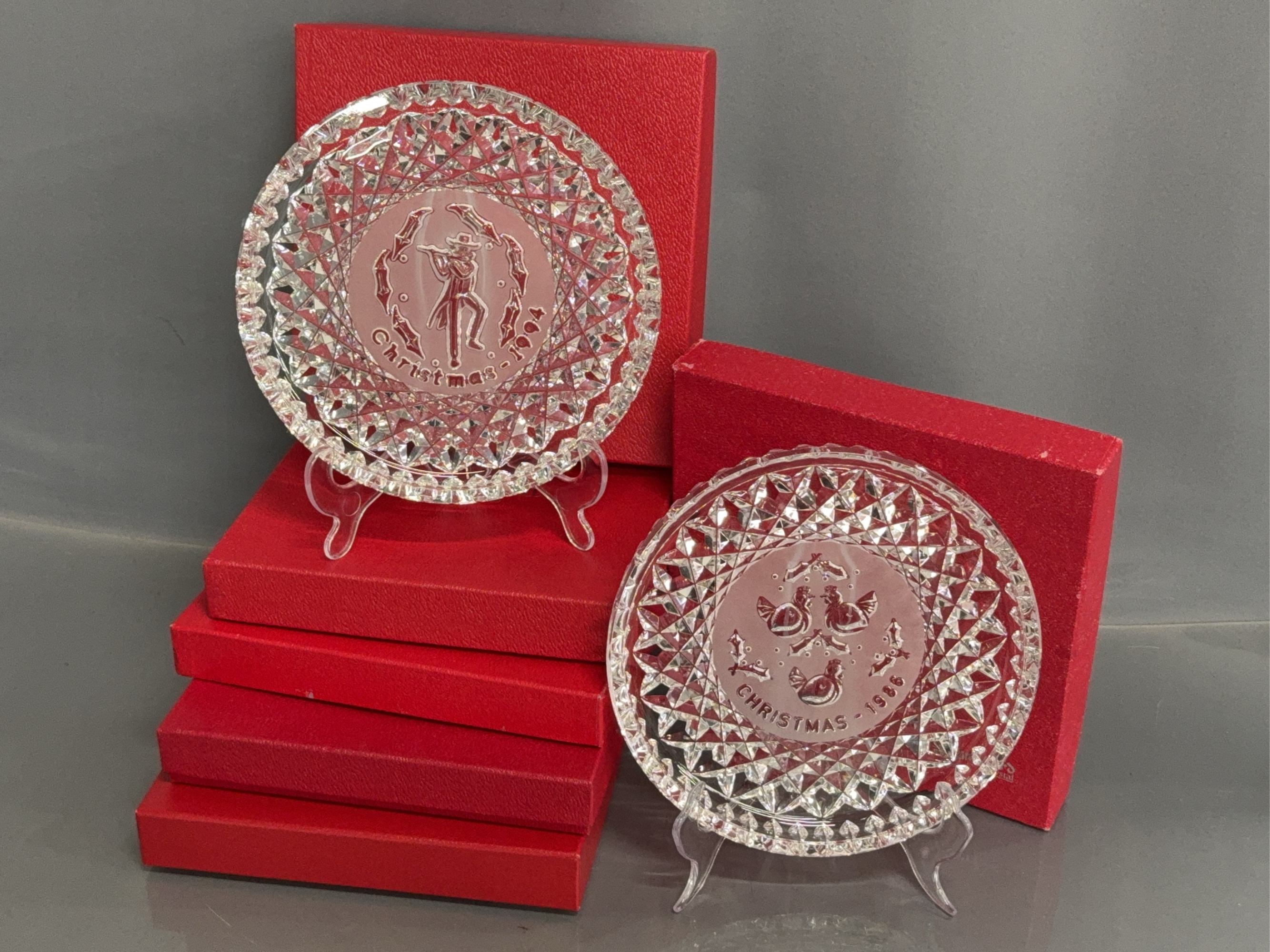 6 Waterford Crystal Christmas Year Plates - 1986, 1994, 1995, 1987, 1999, 2001 - 8" D of each