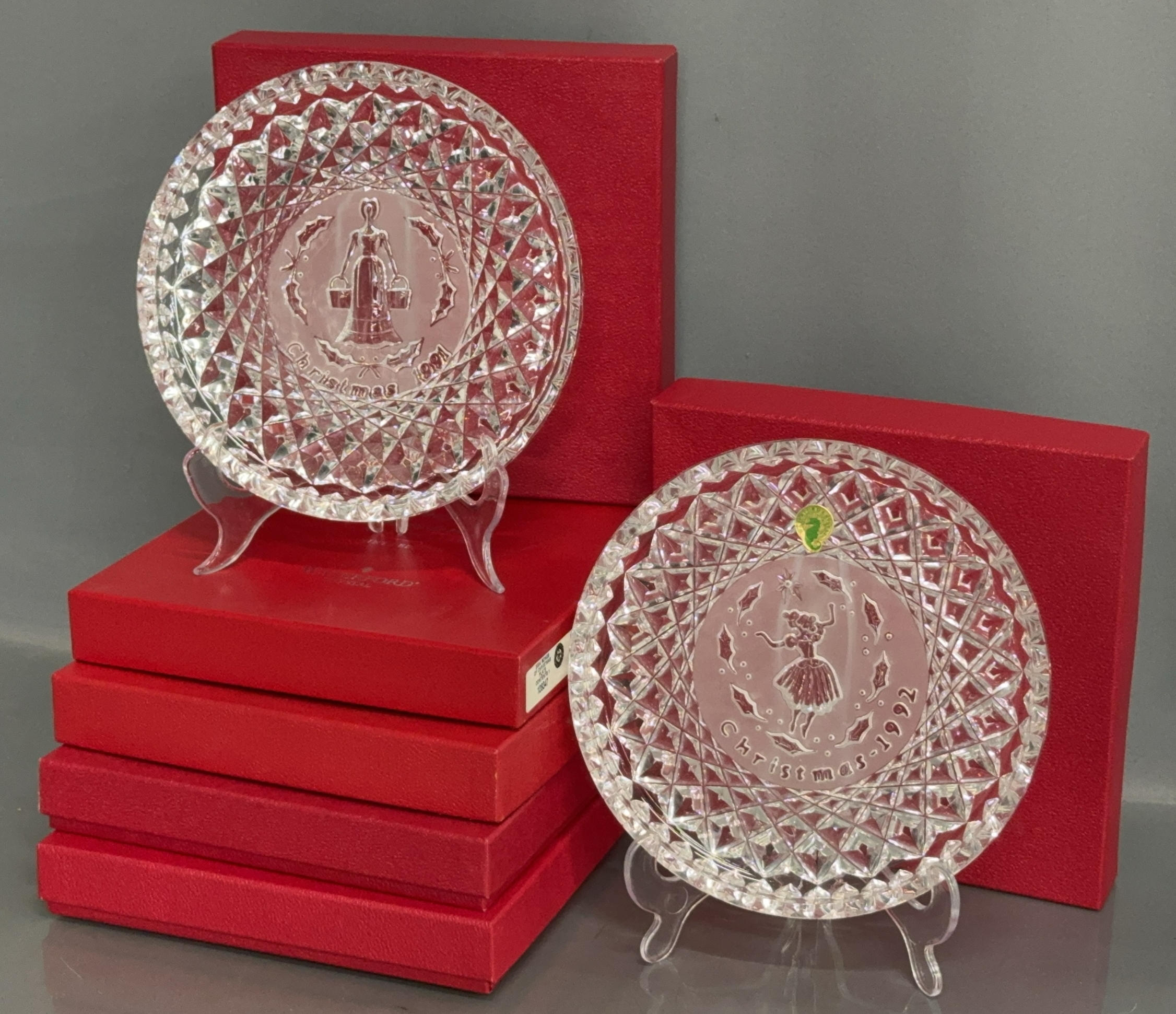 6 Waterford Crystal Christmas Year Plates - 2000, 1993, 1991, 1992, 2004, 1998 - 8" D of each