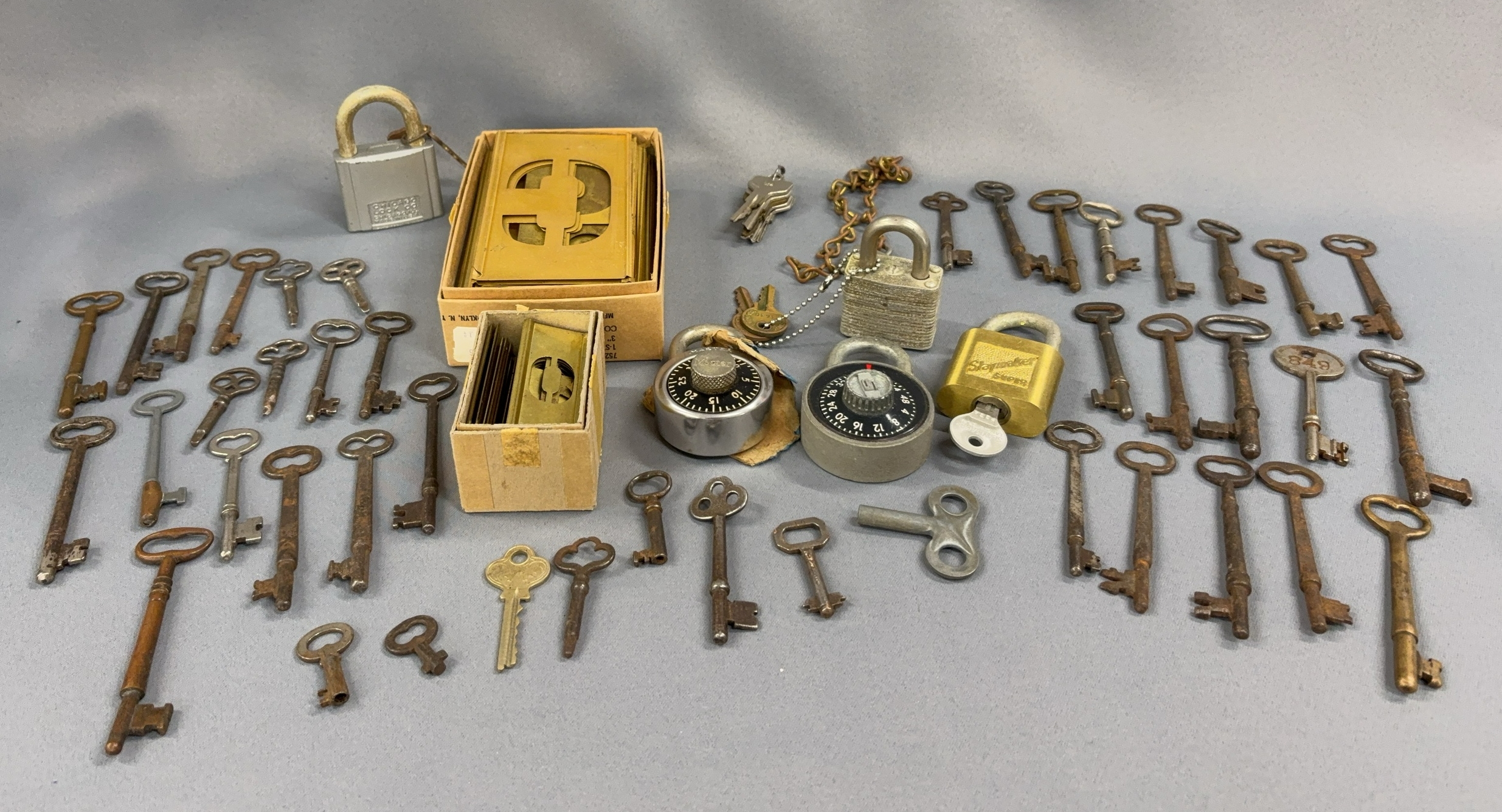 Assorted Skeleton Keys and Locks - 3.5" of largest key