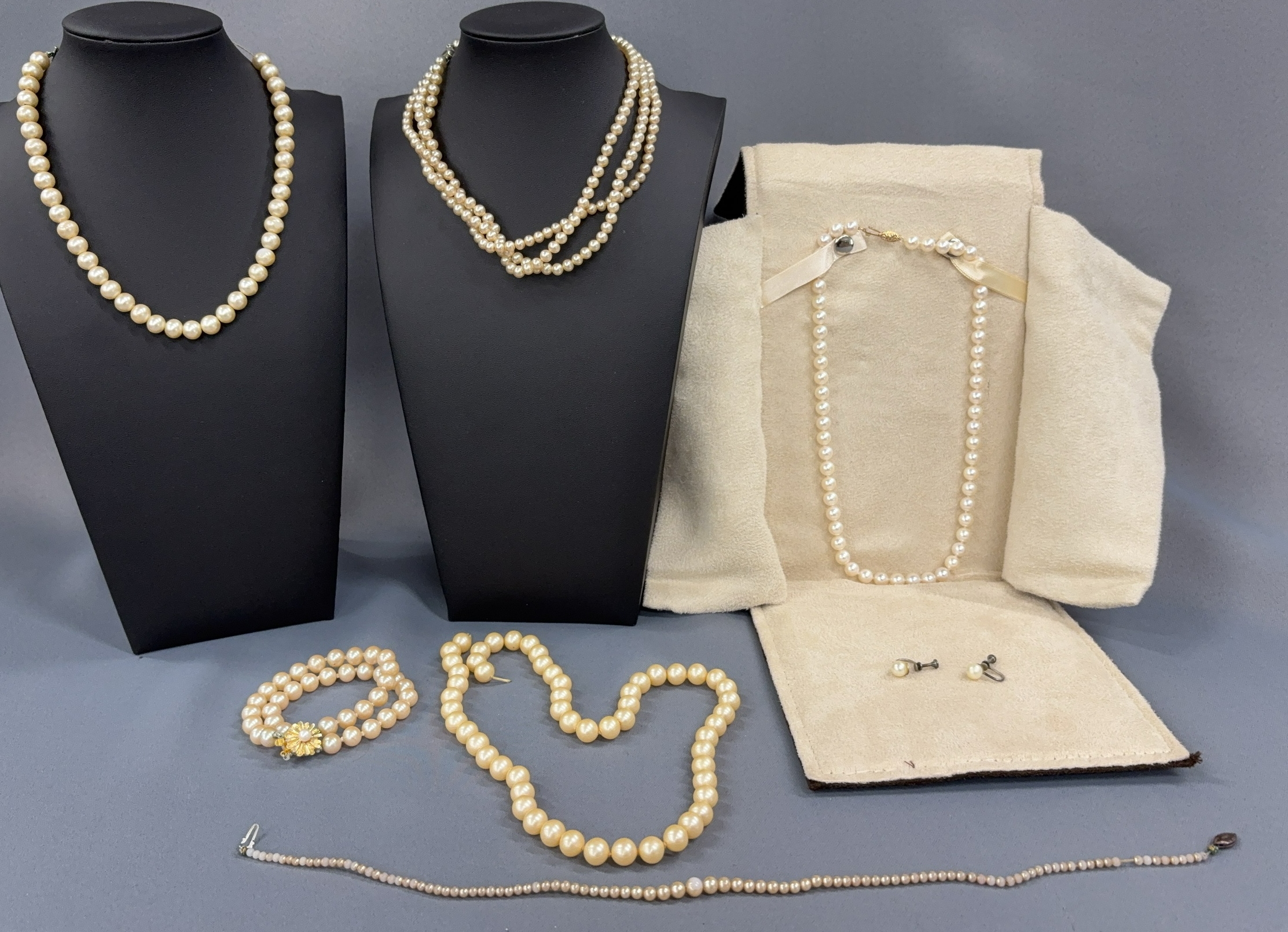 Ladies Costume Pearl Style Necklaces and Bracelet - 17" from clasp to clasp of longest