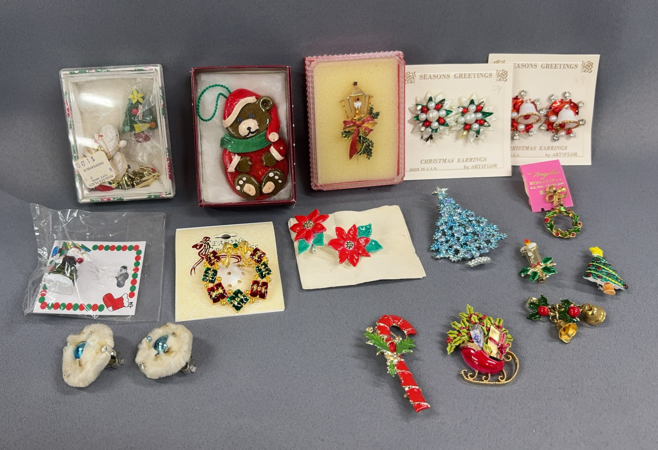 Ladies Christmas Costume Jewelry - Pins, Clip Earrings,