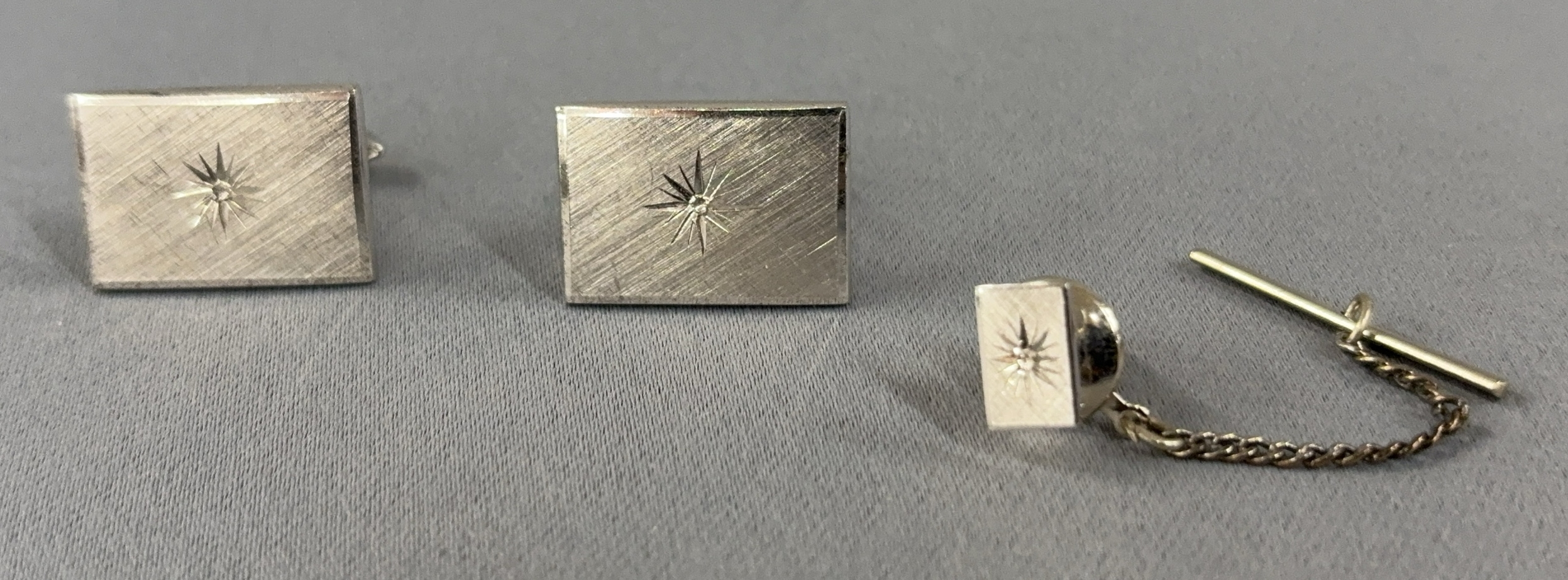Sterling Silver Men's Cufflinks and Tie Tack - 1" of cufflink