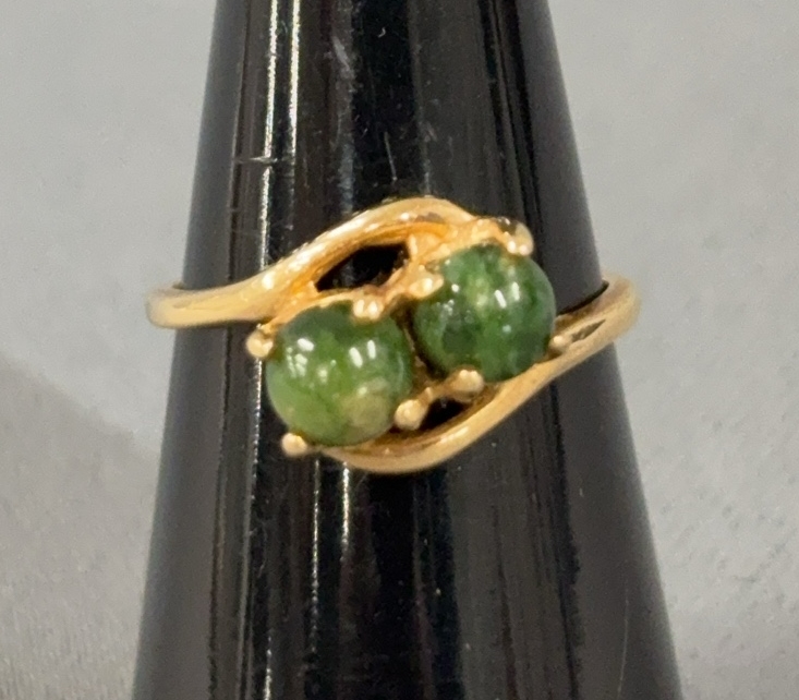 14K Gold Ring with Green Tone Stones - size 5.5
