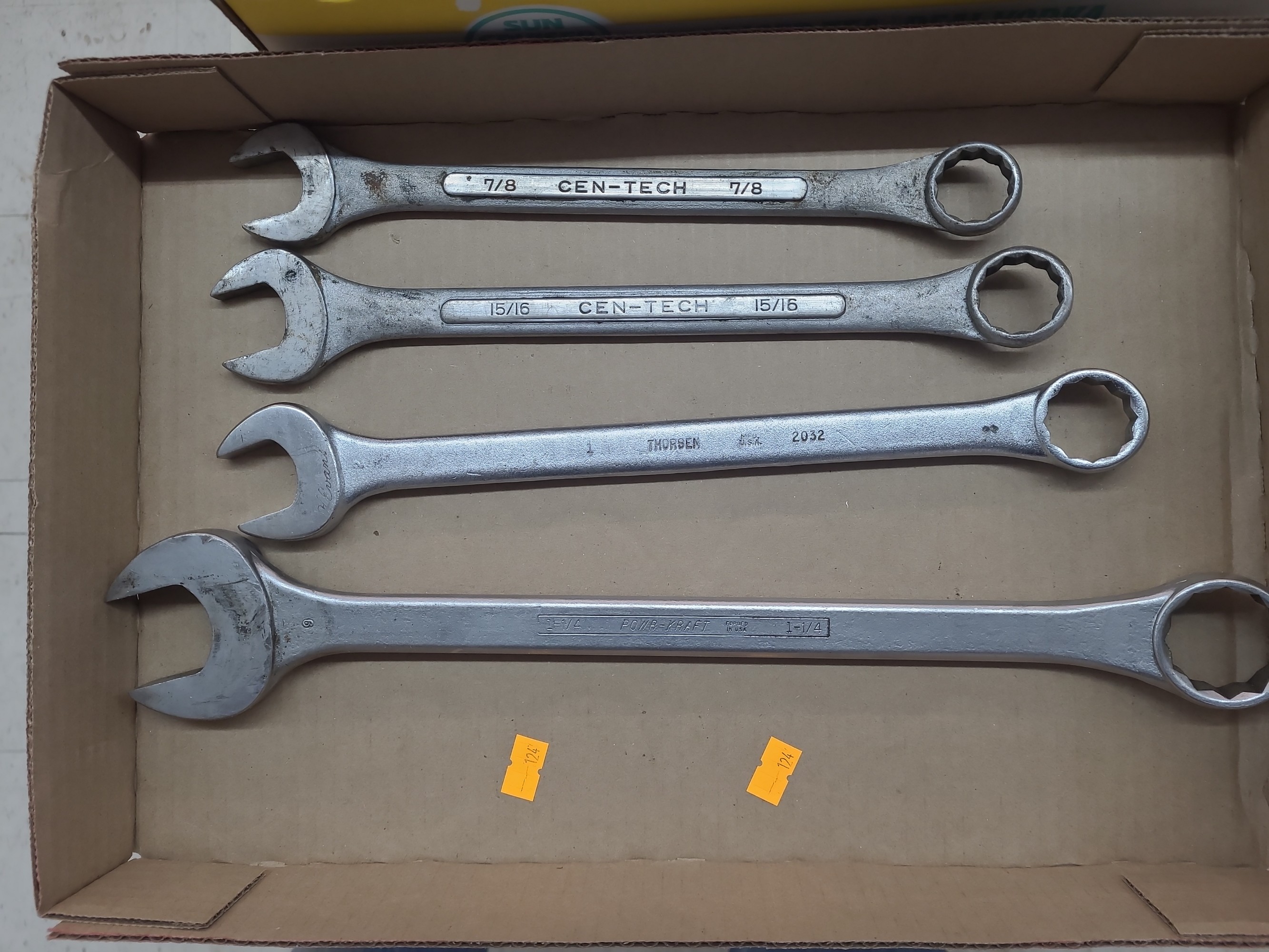 4 wrenches sized 7/8, 15/16, 1inch, 1 1/4.