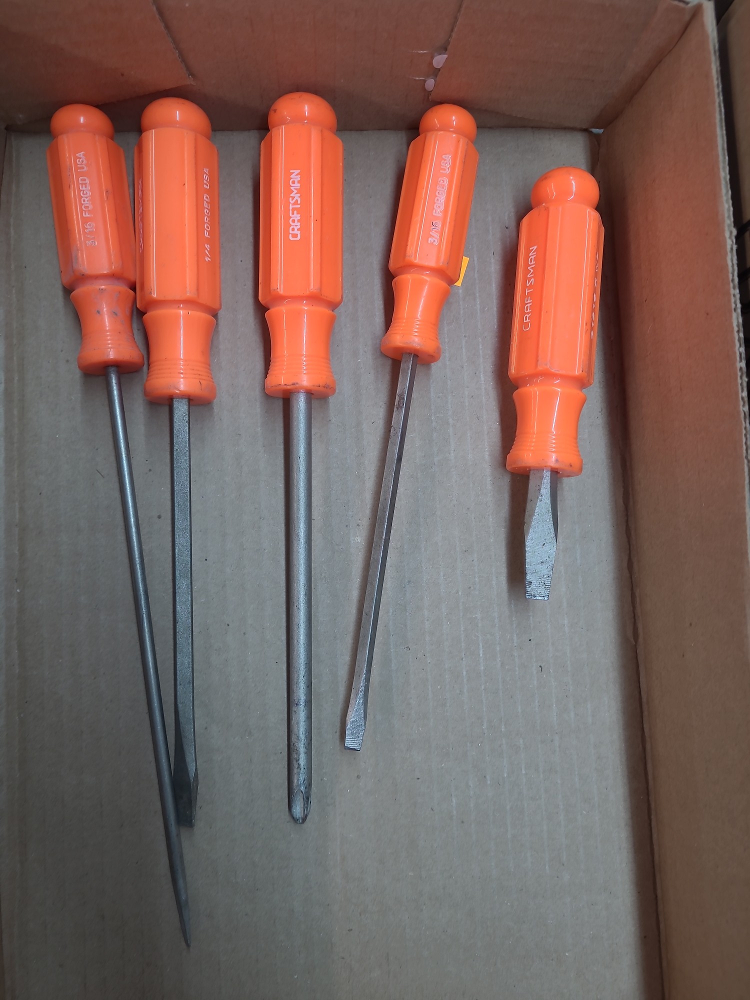 This is an absolutely wonderful collection of Craftsman Power Tools, Craftsman Lawn Mowers, Craftsman Hand Tools along with Nuts/bolts for John Deere equipment.