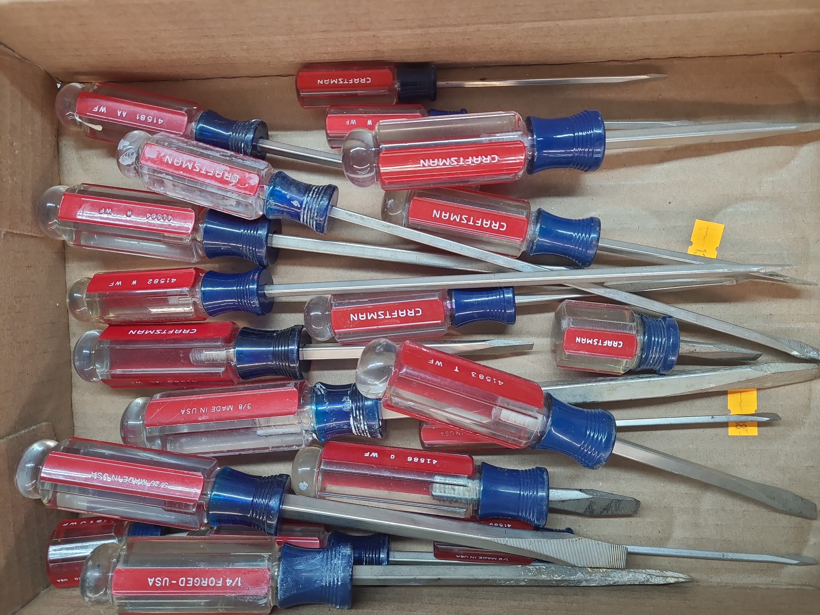 This is an absolutely wonderful collection of Craftsman Power Tools, Craftsman Lawn Mowers, Craftsman Hand Tools along with Nuts/bolts for John Deere equipment.