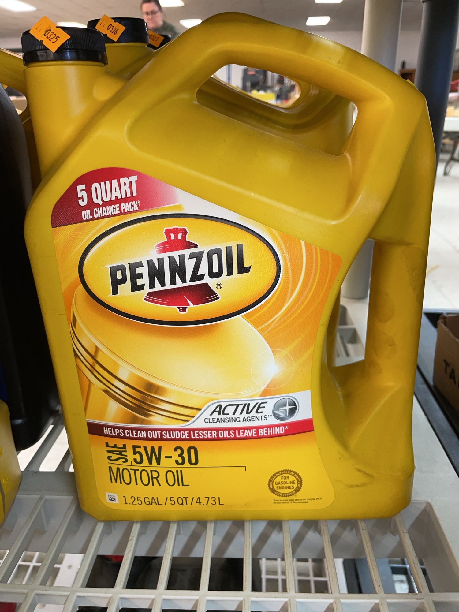 1.25 gallon bottle of pennzoil SAE 5W-30 motor oil