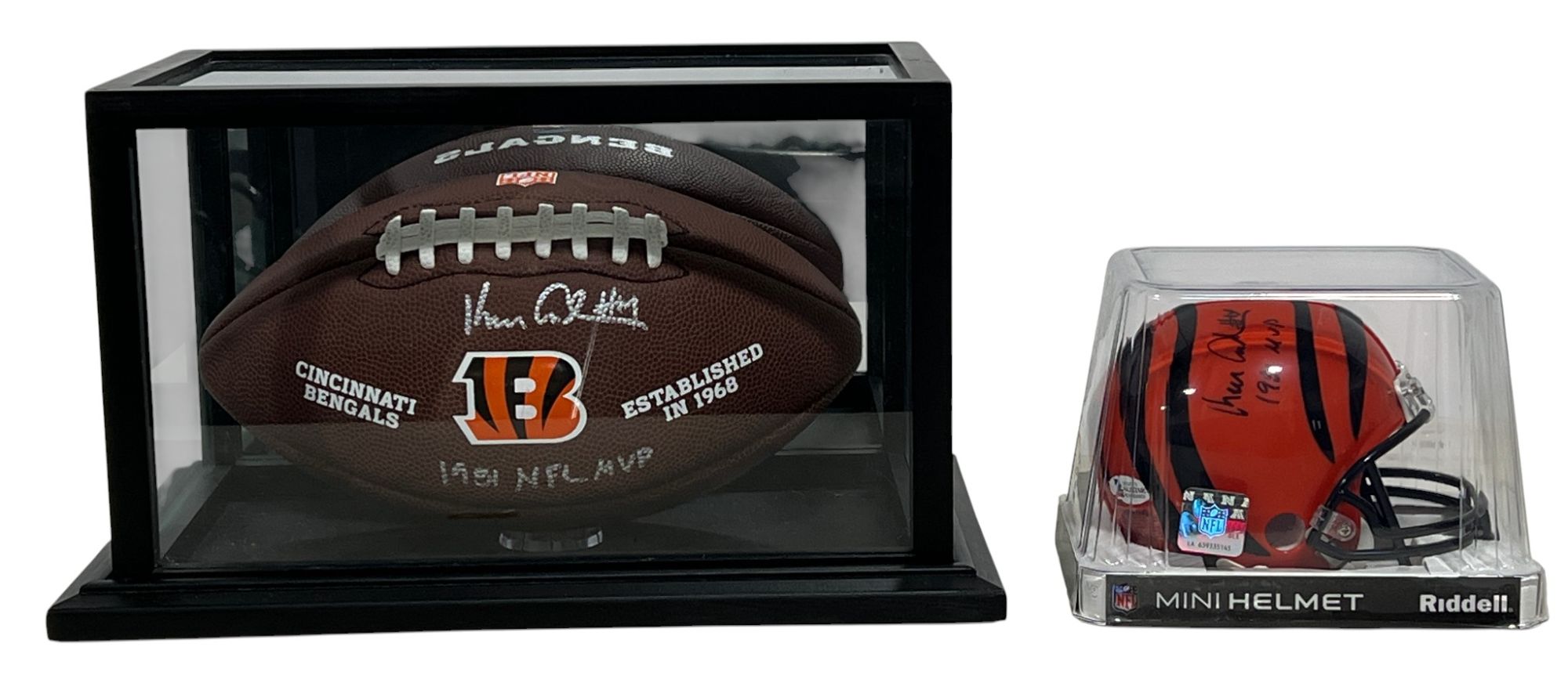 Cincinnati Bengals Themed Signed Football & Mini Helmet