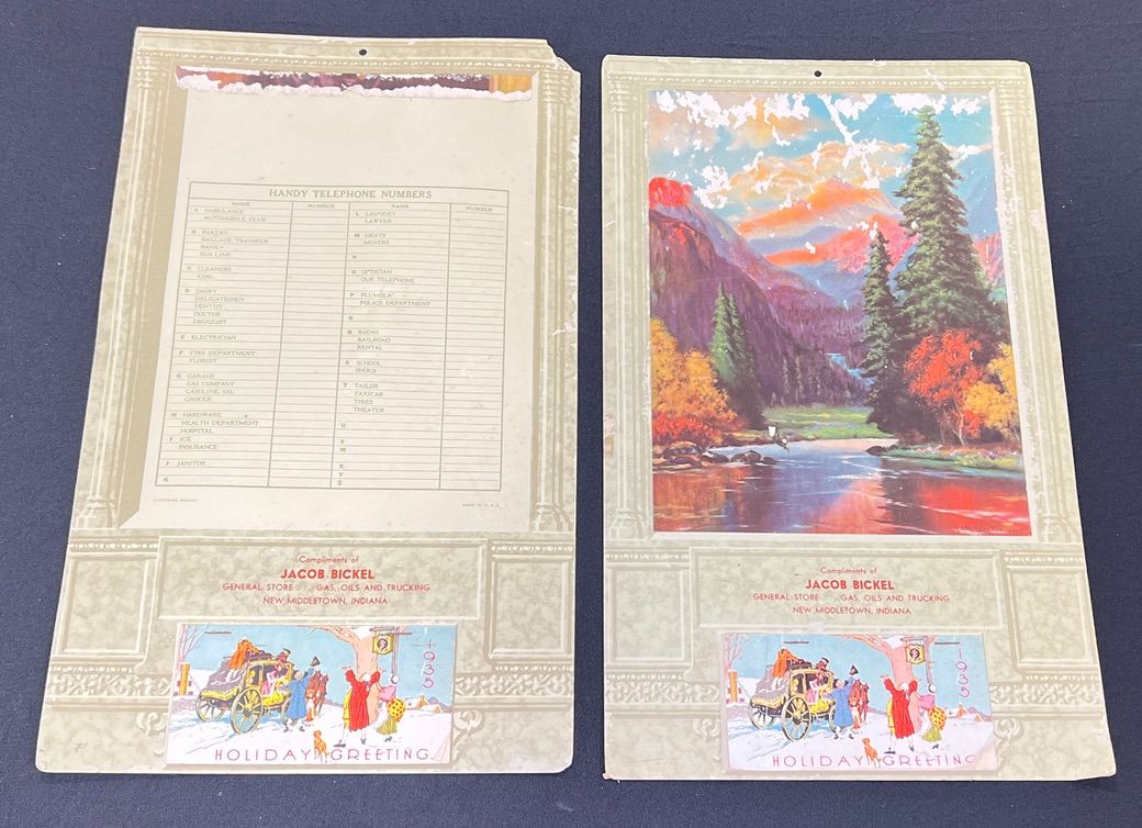 Jacob Bickel New Middletown, IN 1935 Calendars