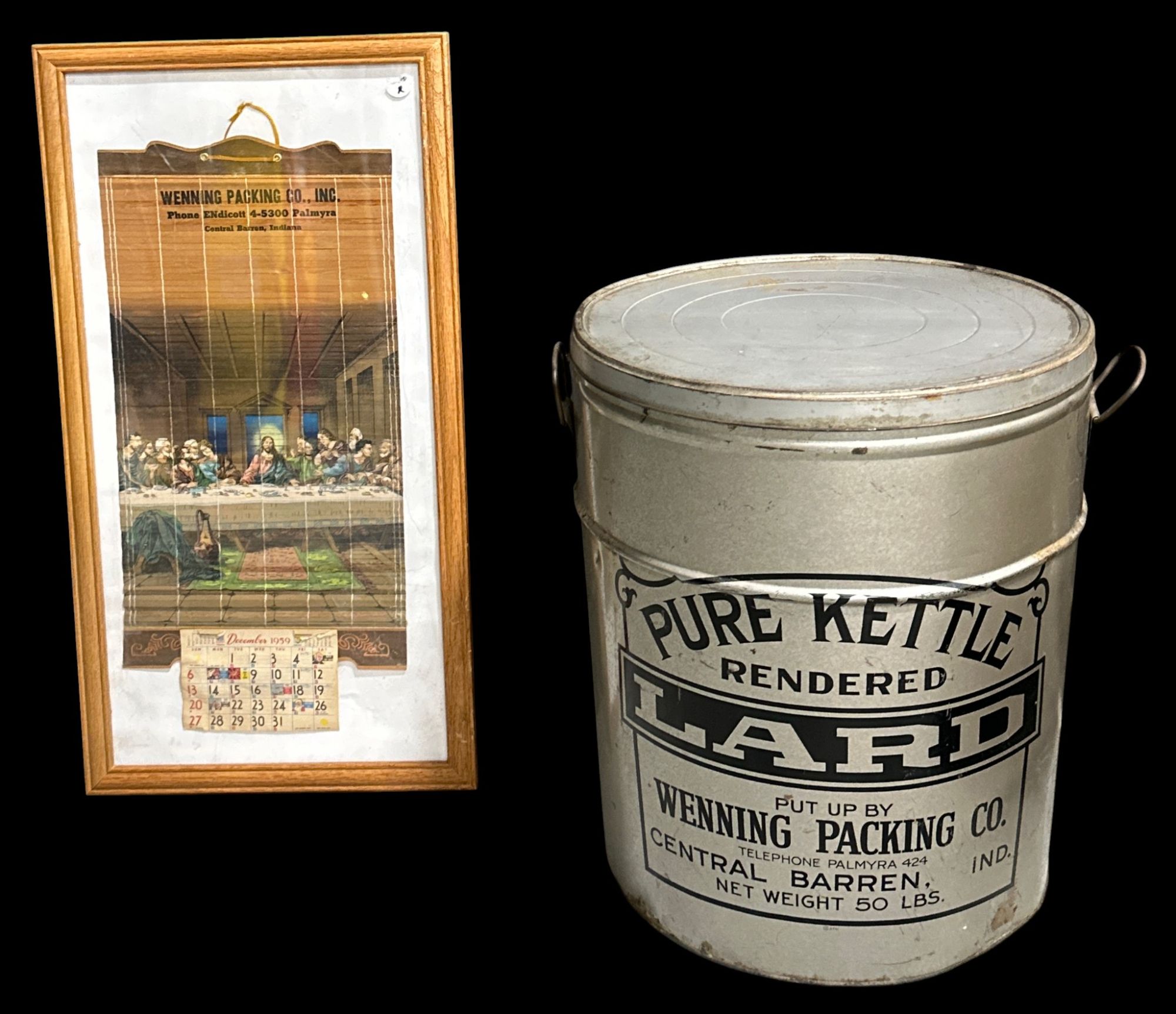 Wenning Packing Palmyra, IN 1959 Calendar & Lard Can