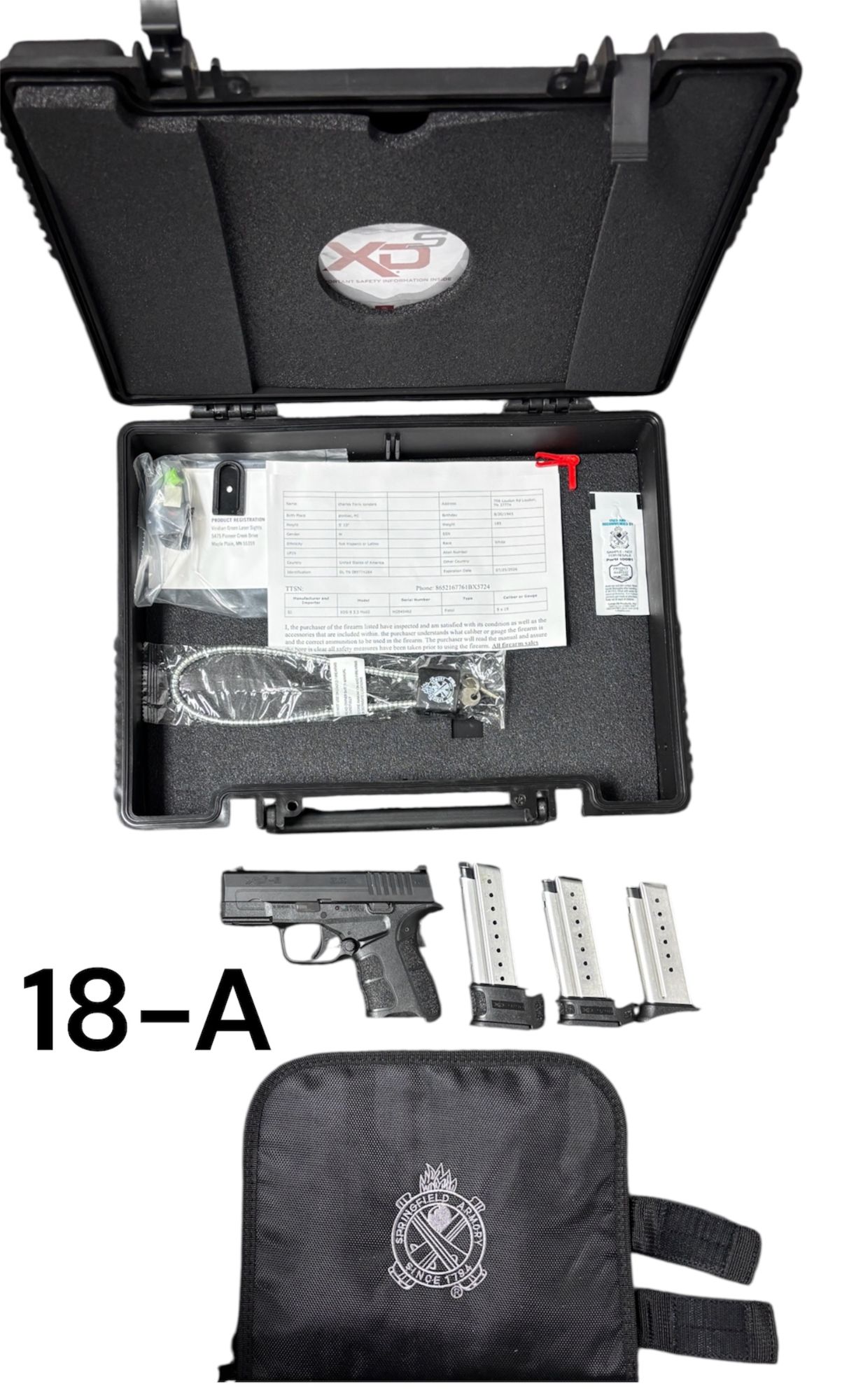 SPRINGFIELD ARMORY SEMI-AUTOMATIC 9MM PISTOL XDS-9 3.3, LIKE NEW, 3 AMMO CLIPS, SOFT CASE IN A HARD PLASTIC CASE - VERY NICE - SN HG945462