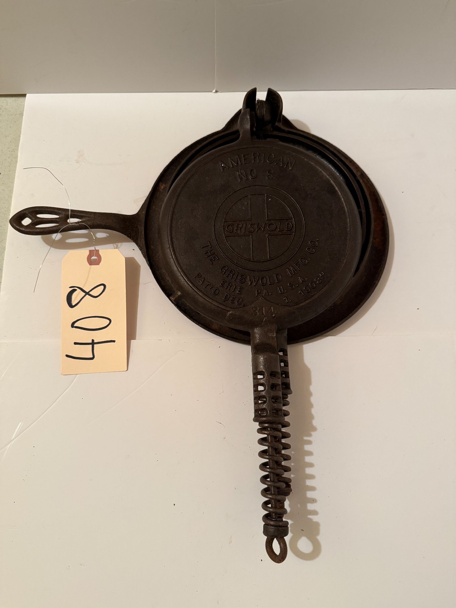 GRISWOLD - THE GRISWOLD MANUFACTURING COMPANY, ERIE, PENNSYLVANIA - PATENT DECEMBER 1, 1908 - AMERICAN NUMBER EIGHT WAFFLE MAKER
