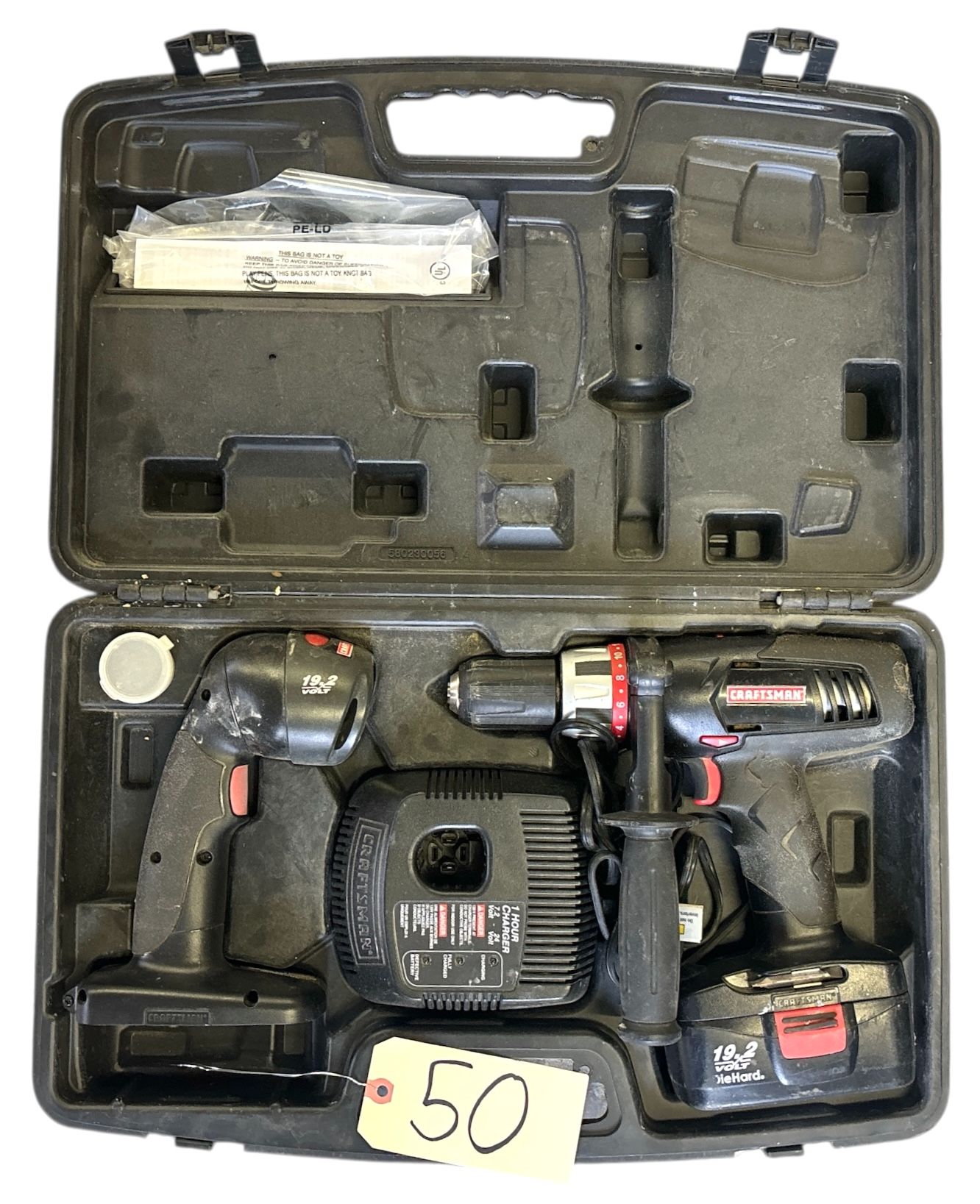 CRAFTSMAN 19.2 V CORDLESS DRILL AND 19.2 V FLASHLIGHT IN BOX WITH CHARGER AND BATTERY