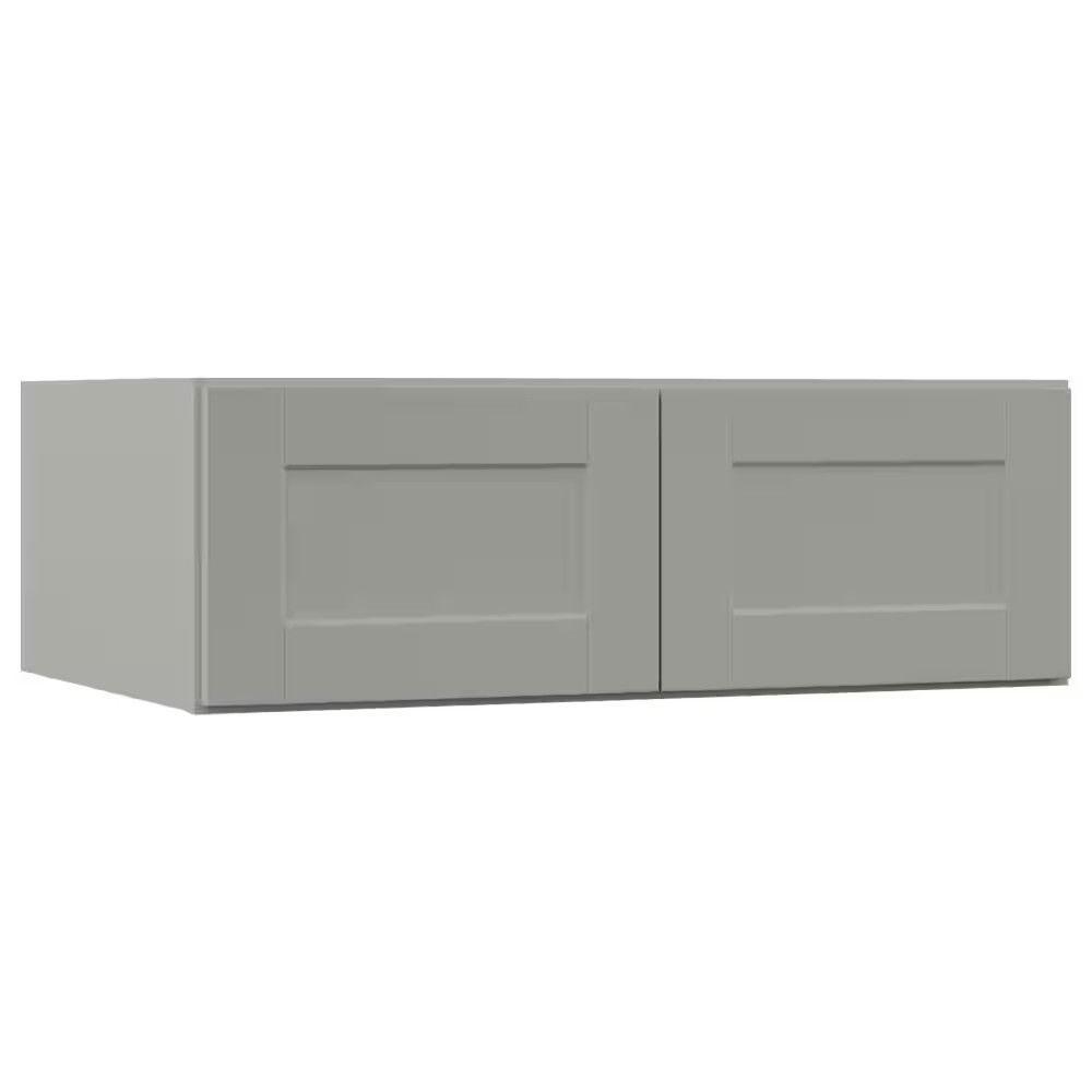 The furniture-quality finish on the Hampton Bay Wall Cabinet adds warmth and beauty to your kitchen design. The cabinet's 3/4 in. shelf thickness offers durability and its adjustable shelf design helps you maximize your storage space. The cabinet is preassembled for hassle-free installation.. Box Material: Furniture Board. Cabinet Construction: Framed. Cabinet Door Height (in.): 11.4. Cabinet Door Width (in.): 17.6929. Cabinet Finish: Thermofoil. Cabinet Material: Other Material. Cabinet Shade: Light. Cabinet Type: Wall Bridge. Color Family: Gray. Color/Finish: Dove Gray. Door Handing: Bi-Parting. Door Material: MDF. Finished End: Right and Left. HUD Approved: Yes. Kitchen Cabinet Features: Finished Interior. Number of Drawers: No Drawers. Number of Shelves: No Shelves. Overlay Type: Full. Returnable: 90-Day. Style: Rustic. Assembled Depth (in.): 24 in. Assembled Height (in.): 12 in. Assembled Width (in.): 36 in. Interior Cabinet Depth (in.): 23.12 in. Shelf Thickness (in.): 0.75 in. Assembled Width (in.): 36 in. Door Material: MDF. Cabinet Type: Wall Bridge. Assembled Depth (in.): 24 in. Assembled Height (in.): 12 in. Cabinet Shade: Light. Box Material: Furniture Board. Cabinet Material: Other Material.