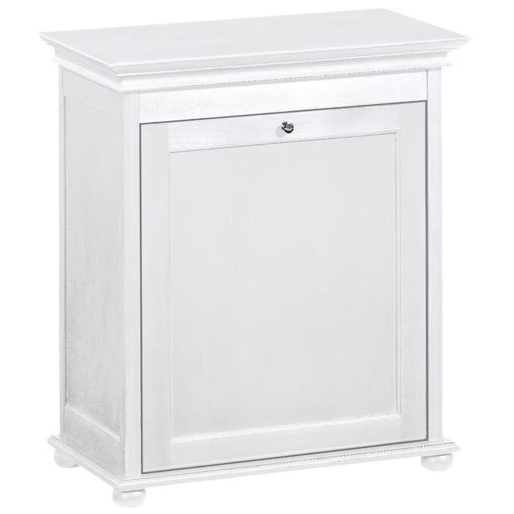 Set aside your laundry with this Home Decorators Collection Hampton Harbor tilt-out hamper. Great for a bathroom, bedroom or a closet, the space-saving tilt-out design keeps laundry or recyclables hidden from view. Extra-dense composite wood construction and a solid wood frame enable lasting use.. Has a washable cotton lining held in place by hook and loop fasteners. Features recessed-panels and bun feet. Also works great as a recycling bin. Crafted of extra-dense, no-warp wood composite and a solid wood frame. 27 in. H x 24 in. W x 13 In. D. Assembly required. White finish for a clean look. White finish for a clean look. .
