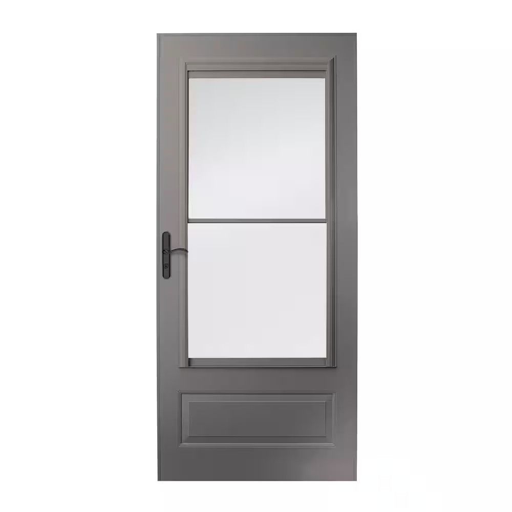 The Andersen 400-Series Storm Door is our best selling partial light storm door. This storm door is available with our most popular options and features a 3/4-light design. Featuring a 1-hand retractable insect screen to easily adjust from weather protection to ventilation without having to remove and store the glass.. Features convenient 1-hand retractable insect screen. Simple step closer system with hands-free foot activated lower closer that holds door open. Premium handle with built-in keyed deadbolt lock. Single layer weatherstripping on top, bottom and sides to help reduce drafts. Easy to clean aluminum exterior with a moisture resistant wood core for strength and durability. Solid lower embossed panel. 6-color options available through special order. Pet entry option available through special order. Additional sizes available special order, including custom. Handle set available in other colors. Bottom Door Sweep: Single. Color Family: Dark Gray. Color/Finish: Charcoal Gray. Door Handing: Universal/Reversible. Door Type: Storm. Features: Built-in Keyed-Lock,Retractable Screen. Finish Type: Painted. Handleset Finish: Black. Included: Handle Set,Hardware,Instructions,Screen. Material: Aluminum. Product Weight (lb.): 65 lb. Type of Weatherstripping: Single. View Type: Mid-view. Door Height (in.): 80 in. Door Thickness (in.): 1 in. Door Width (in.): 32 in. Fits Opening Height (in.): 80 to 81. Fits Opening Width (in.): 31 3/4 to 32 3/8