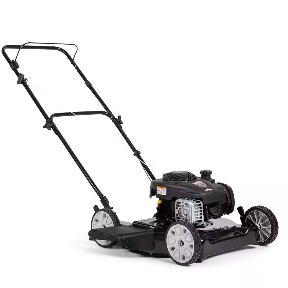The Murray 20-inch cut gas push mower offers a lightweight, compact design for easy maneuverability. Starting is a breeze with the Prime 'N Pull Easy Start System. Just prime the bulb on your mower three times and pull the cord for a start. The Briggs & Stratton 125 cc engine provides great cutting power. This gas push mower has a 20-inch cutting blade and side discharge feature. Sturdy 7-inch wheels provide great support. Adjust the cutting height quickly and easily with 5-position, 4-wheel height adjustment. This gas push mower assembles quickly out of the box, with no tools required. 21 in. steel deck. Prime EZ starting system, the hassle-free way to start your mower, push the prime bulb 3-times and pull the starting cord. 5-position, four 4-point height adjustment. 4 sturdy 7 in. wheels lets you mow tight spaces. Use fuel stabilizers to maintain your engine and increase the longevity of your mower. Cutting Width (in.): 20 inches. Power Type: Gas. Size of Yard: 1/4 - 1/2 Acre. Engine Make: Briggs and Stratton Engine. Rear Wheel Height (in.): Low Wheel. Cutting Height Options: 5-position. Start Type: Pull Cord. Features: Adjustable Cutting Height.