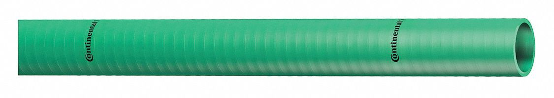 These PVC (polyvinyl chloride) bulk water suction and discharge hoses are used to vacuum water in construction, industrial, and agricultural applications. The hoses are made from PVC, which provides good flexibility and good resistance to chemicals. They have rigid PVC helix reinforcement that helps them keep their shape when not in use and prevents the hoses from collapsing in suction applications. Bulk hoses can be cut to the desired length, and compatible hose fittings can be added to the ends of the hoses to create custom hose assemblies. Brand: CONTINENTAL Hose Inside Dia.: 4 in Hose Outside Dia.: 4-7/16 in Hose Length: 25 ft Hose Color: Green Hose Tube Material: PVC Hose Cover Material: PVC Burst Pressure: 165 psi Max. Working Pressure @ 70 F: 55 psi Temp. Range: 0 to 158 F Standards: 3-A; FDA; USDA Hose Reinforcement Material: PVC Safety Factor: 3:1 Bend Radius: 16 in Hose Configuration: Bulk Hose Vacuum Rating: 29 in Hg Compatible Chemicals: Deionized Water; Fresh Water; Salt Water.