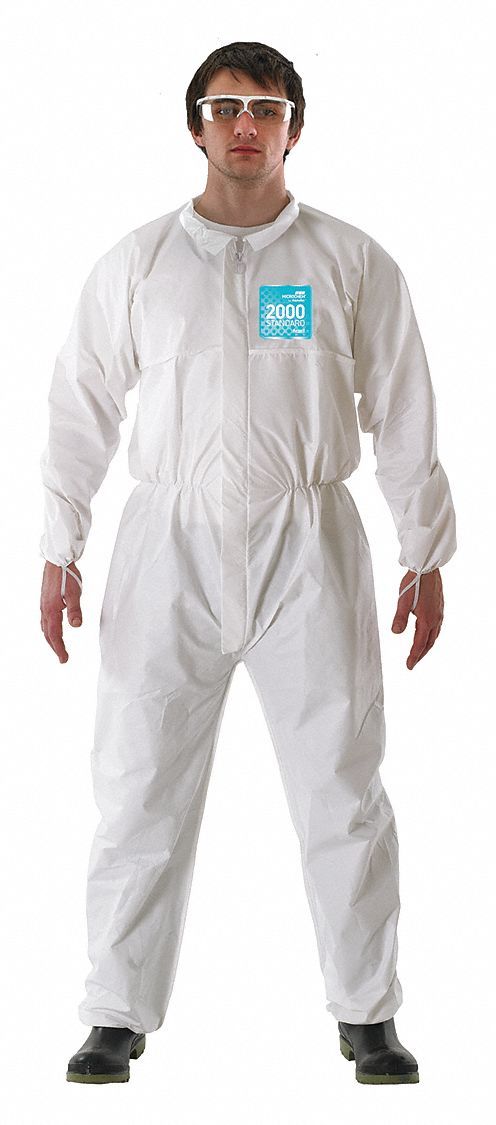 These coveralls protect workers from nonhazardous liquids and dry particulates. Nonhazardous liquids include paint, water, and mild cleaning chemicals encountered in maintenance, autobody, and wastewater facilities. Brand: ALPHATEC Coverall Material: Microporous Film Seam Style: Bound Ankle Type: Elastic Wrist Type: Elastic w/Thumb Loops Pathogen and Chemical Ratings: EN 14126; Meets ASTM F1670:1671 Color: White Named Size: Multiple Closure Type: Zipper Hazard Type - NEW: Non-Hazardous Liquids Liquid Dispersal Type - NEW: Spray Specialized Hazard Type - NEW: Bloodborne Pathogens Manufacturer Part Number: 682000 Cuff Style: Elastic Series: Model 103 Sub-brand: MICROCHEM(R) by AlphaTec(TM) Hazard Type - Filter: Non-Hazardous Liquids Named Size - Filter: Multiple Ankle Style: Elastic , Wrist Closure: Elastic Material: Microporous Film Laminate Wrist/Ankle Closure: Elastic / Elastic Coverall Style: Collared Includes Boot Covers: No Includes Thumb Loops: Yes Ankle Closure: Elastic Wrist1: Elastic Yes Display Sell UOM: PK Display Qty: 25 Ankle1: Ankle Style: Elastic , Includes Outer Boot Flaps: No Includes Outer Boot Flaps: No.