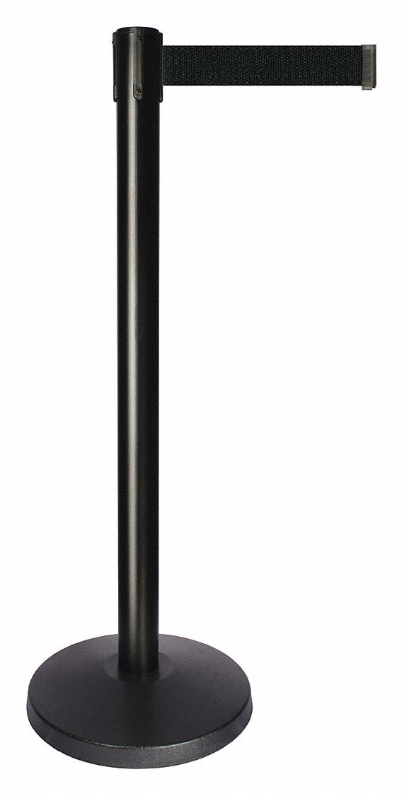 These post barriers have retractable belts in a single, solid color with no pattern. Subtle colors allow crowd control barriers to blend in with the aesthetic of a theater, museum, or formal event while bright colors help draw more attention to barriers around safety concerns. Brand: QUEUEWAY Manufacturer Part Number: QPLUS-33-B9 Post Color: Black Post Material: Metal Alloy Post Height: 40 in Height Adjustability: Fixed Height Post Finish: Powder Coated Post Diameter: 2-1/2 in Number of Belts: 1 Belt Width: 2 in Belt Length: 10 ft Belt Color: Black Belt Pattern: No Pattern Message: No Legend Base Material: ABS Base Finish: Powder Coated Base Diameter: 14 in Indoor/Outdoor Usage: Indoor Includes: Universal Cassette Clip ADA Compliant: No Display Sell UOM: EA Display Qty: 1 Product Type: Stanchion Belt LxW: 10 ft x 2 in Belt Color Family: Black ADA Compliance: Not ADA Compliant.