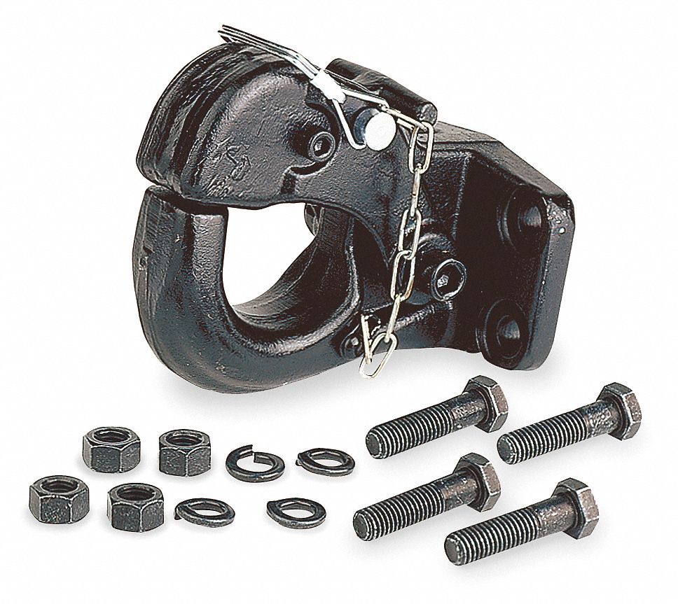 These heavy-duty hooks hold tightly to lunette rings to form a pintle hitch. These hooks allow stranded vehicles to be removed at angles and off-road turns because the hooks pivot around the lunette ring for flexibility. Brand: REESE Gross Trailer Weight Capacity: 30,000 lb Gross Vehicle Weight Capacity: 30,000 lb Gross Towing Weight Capacity: 30,000 lb Tongue Weight: 6,000 lb Material: Steel Finish: Powder Coated Number of Mounting Holes: 4 Hole Diameter: 1/2 in Horizontal Distance Between Mounting Holes: 3-3/8 in Vertical Distance Between Mounting Holes: 1-3/4 in Vehicle Class: III; IV; V Vehicle Make: Universal Vehicle Model: Universal Vehicle Model Year: Universal Overall Length: 5 in Type (Class): V Mount Type: Bolt On Number of Balls Included: 0 Resistance Properties: Corrosion-Resistant Shank Style: No Shank Vehicle Make/Model/Year: Universal Weight: 12 lb Manufacturer Part Number: 74119